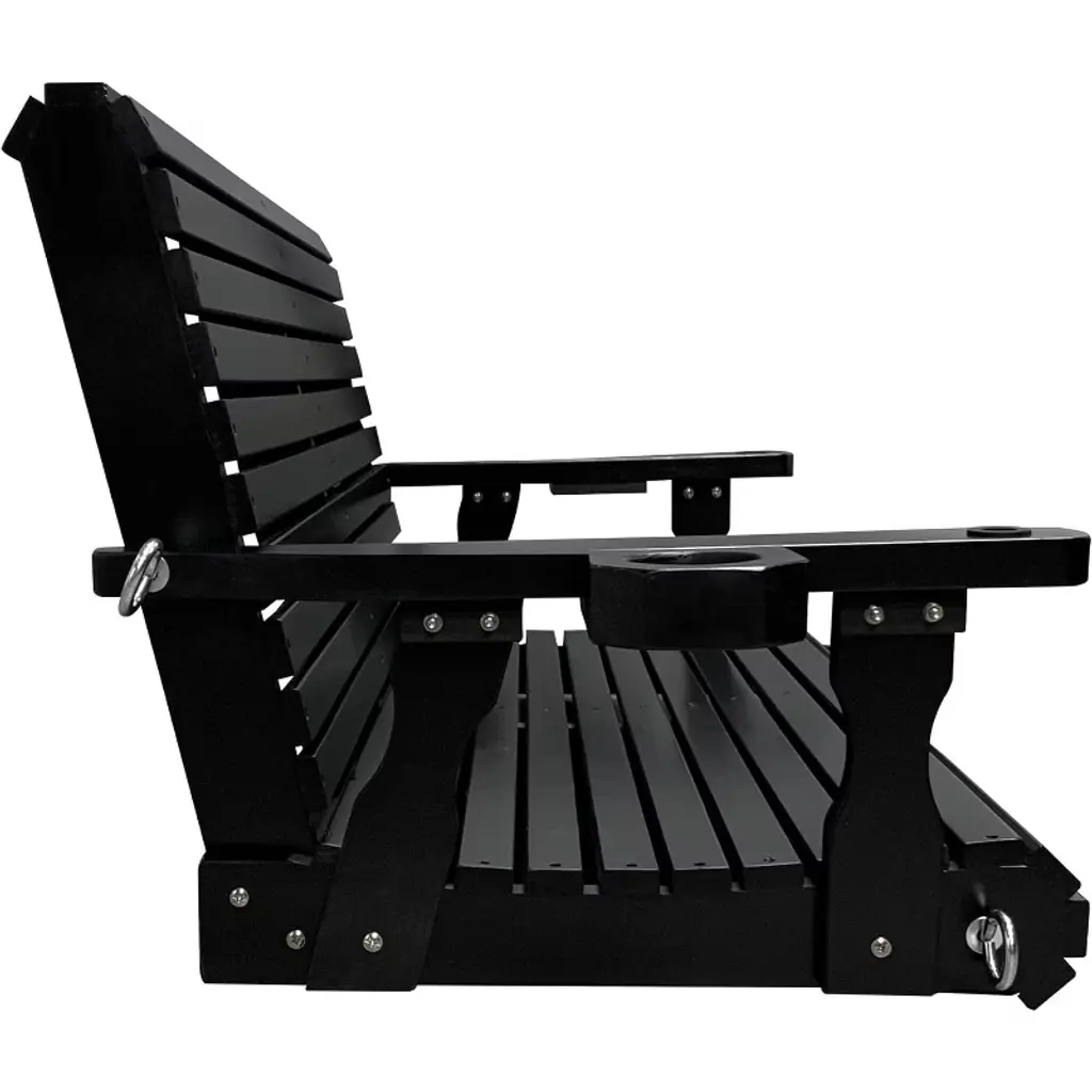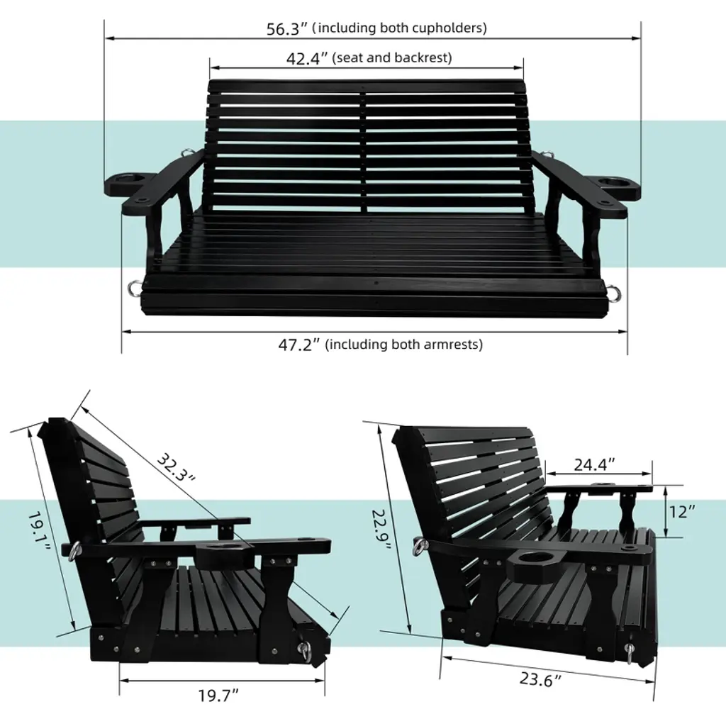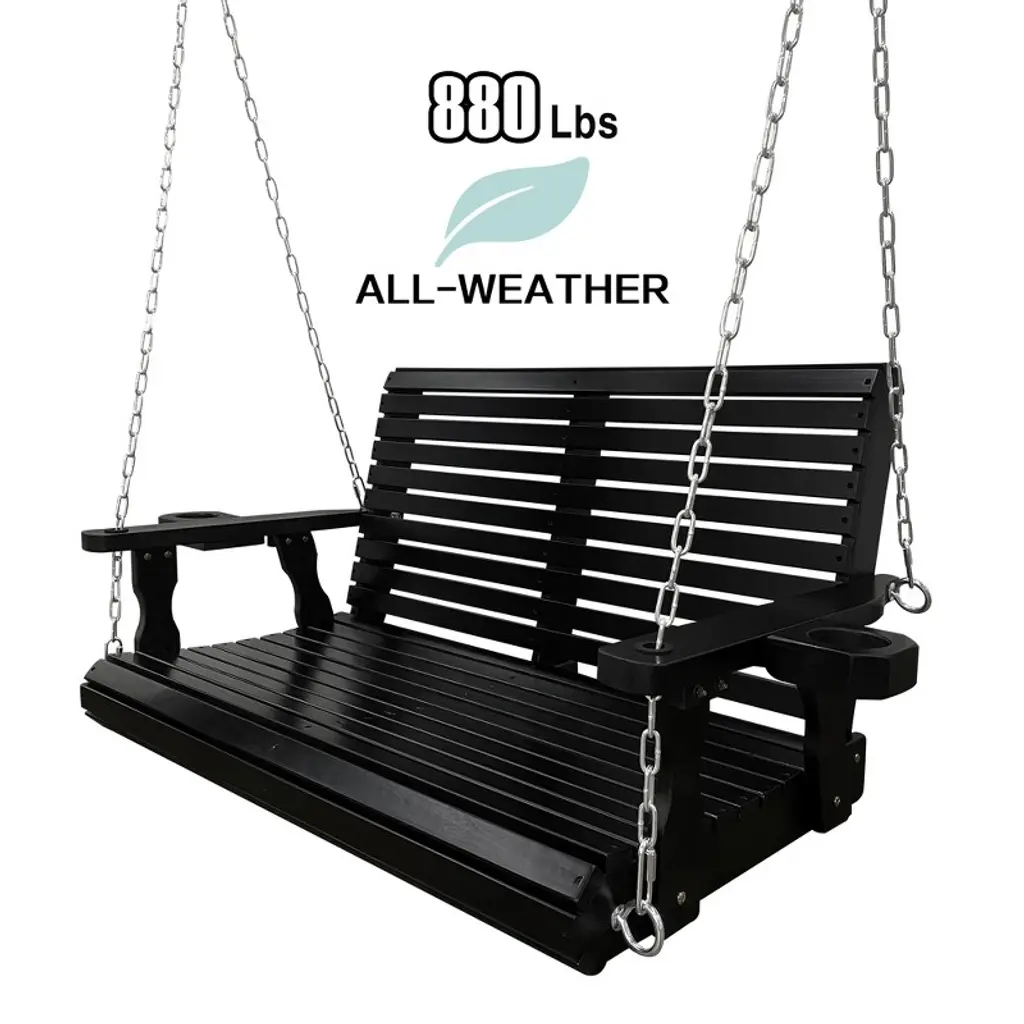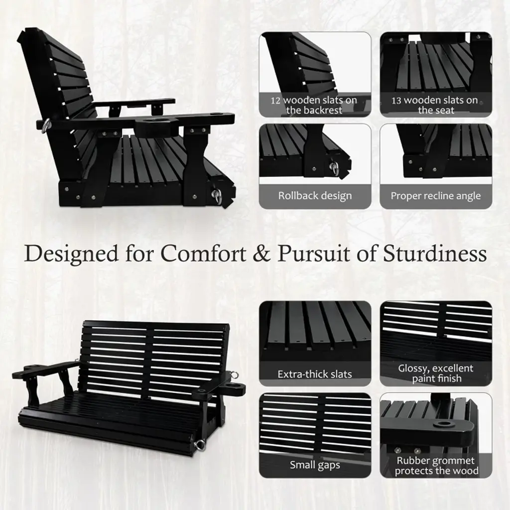 Fortune Candy Wooden Porch Swing 2-seater For Outdoor Patio Garden Yard (Black - 4 Ft.)