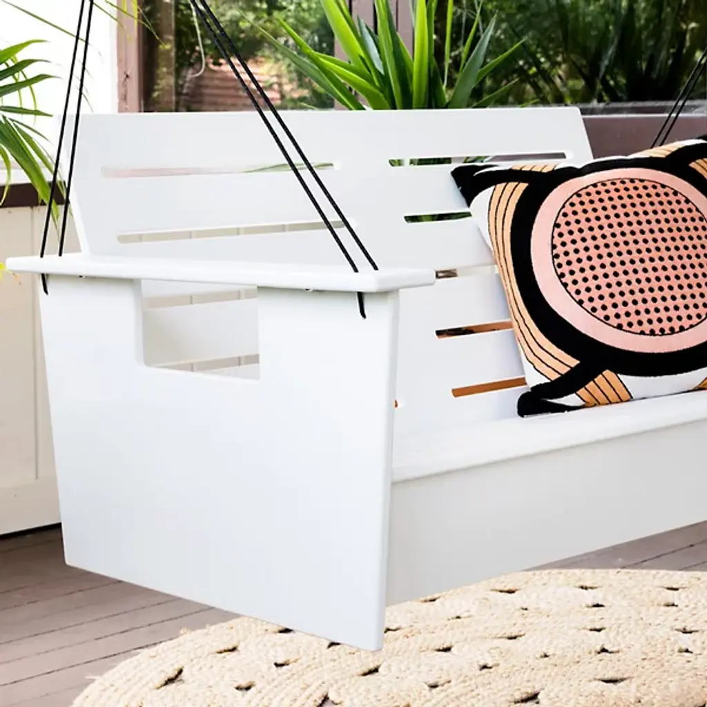Country comfort gets a contemporary upgrade in the GO Outdoor Porch Swing by Loll. Sitting down and standing up is almost effortless thanks to a taller seat height and more upright back than usual, while the porch swing's durable design provides years of cozy enjoyment. A charming addition to a front porch or covered back deck, this weatherproof swing can be left outdoors year-round and comes in multiple color options to accommodate any décor.