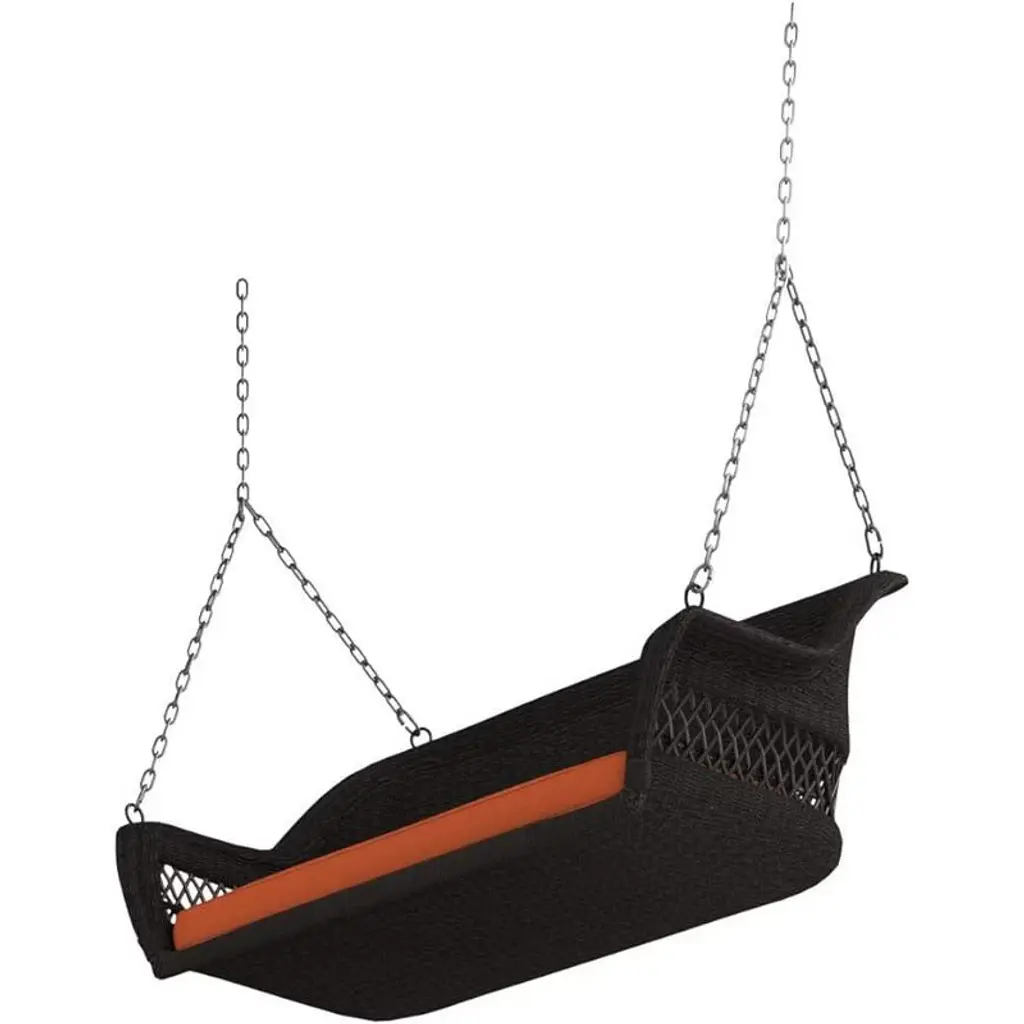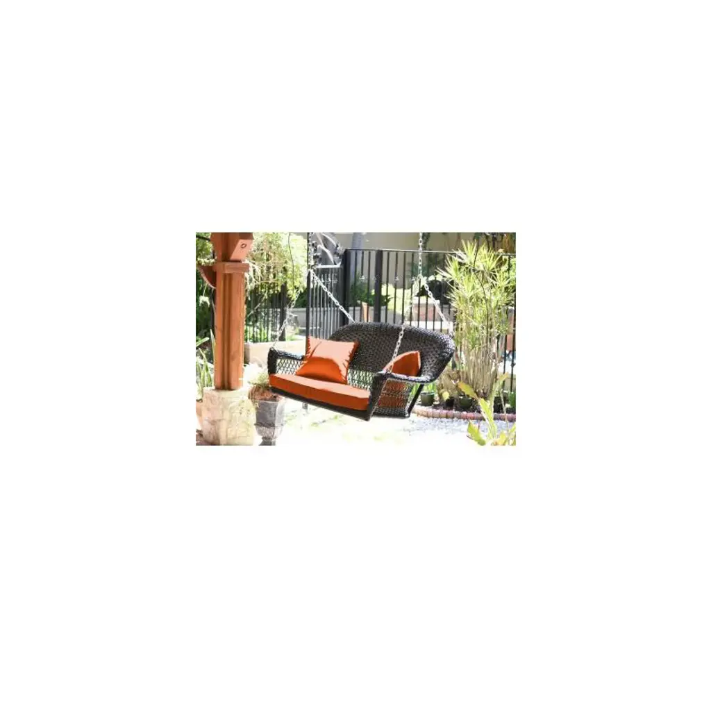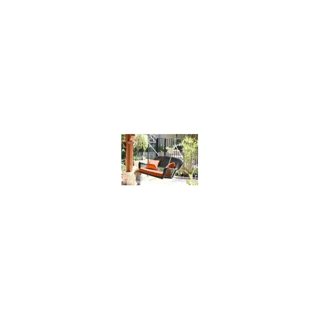 Homestock Espresso Wicker Porch Swing With Orange Cushion