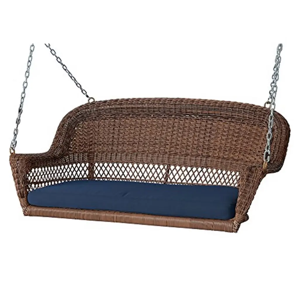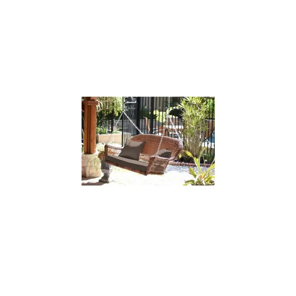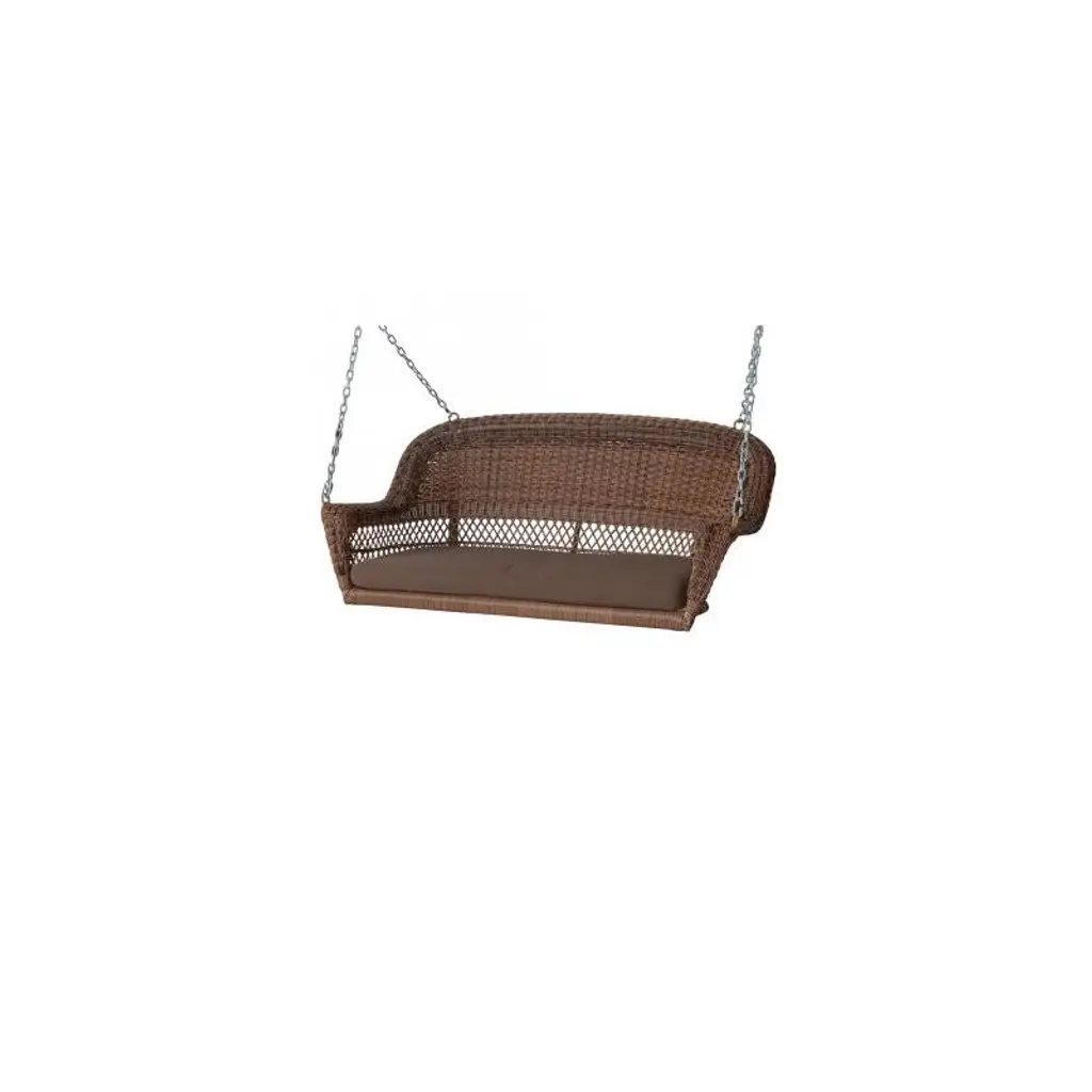 Homestock Honey Resin Wicker Porch Swing With Two Brown Cushion