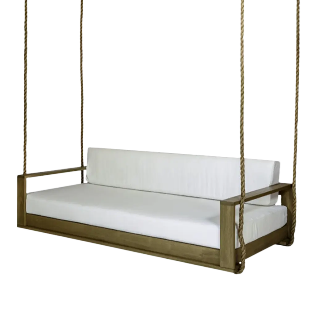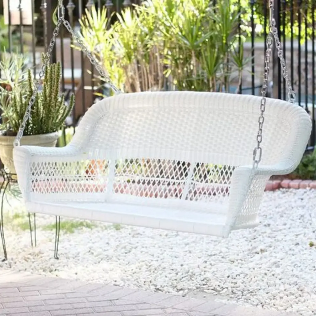 Our beautifully hand-woven and all-weather resin wicker swing will give you real summer comfort. The strong steel frame is meticulously wrapped in hand-woven resin wicker and handsomely finished with braid trim to give this hanging porch swing fresh appeal. Unlike real wicker which dries out and cracks, resin wicker is flexible and fade-resistant, which means it stays like new season after season. What's more, all-weather wicker doesn't absorb water and also allows for air flow, making it the perfect choice for the poolside!