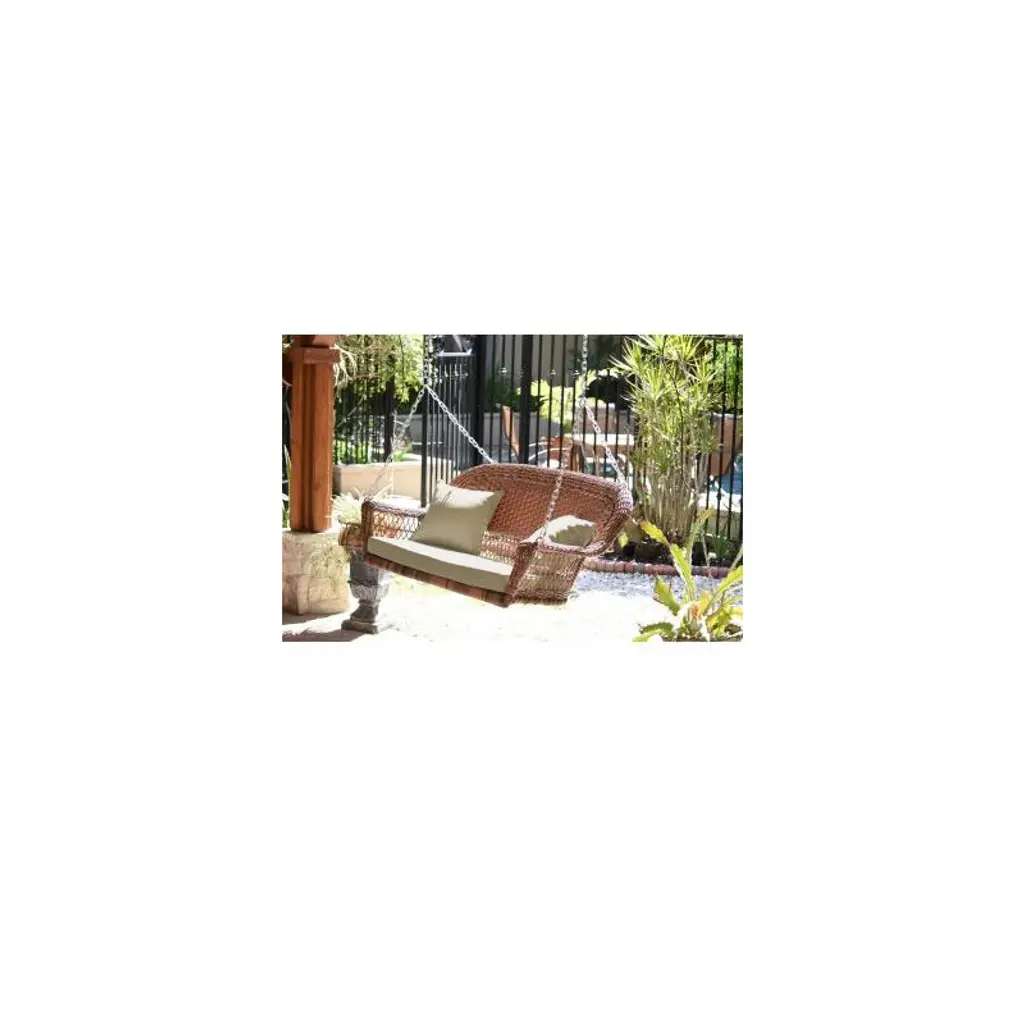 Homestock Honey Wicker Porch Swing With Tan Cushion