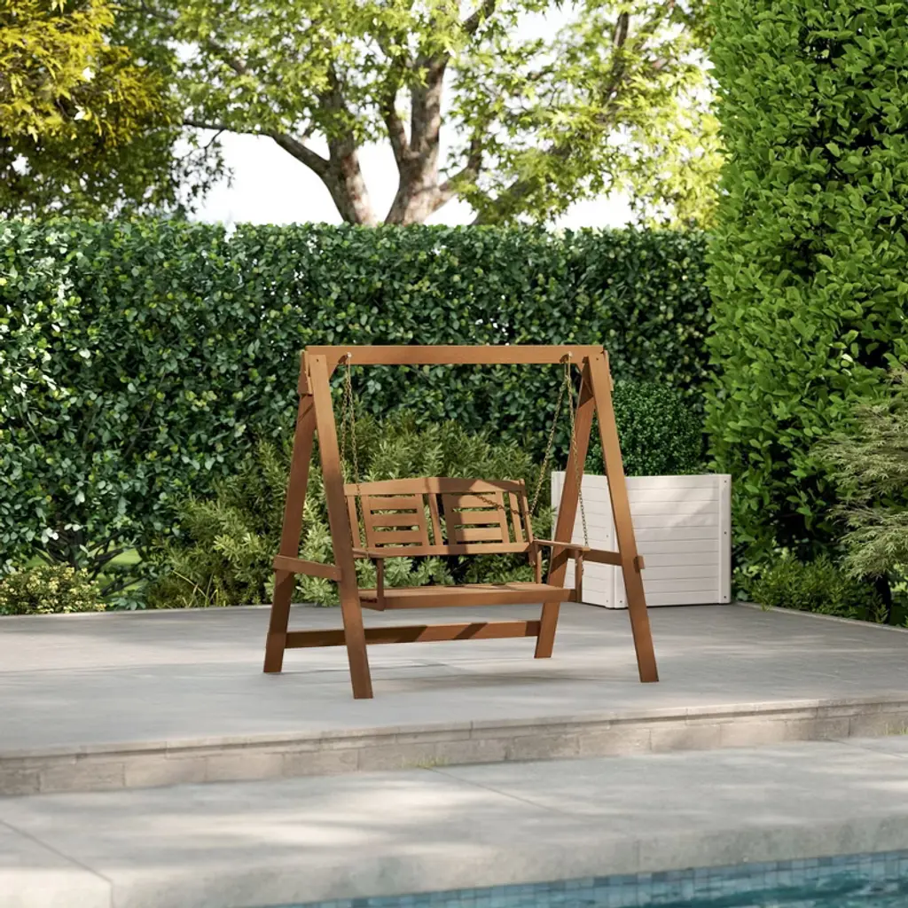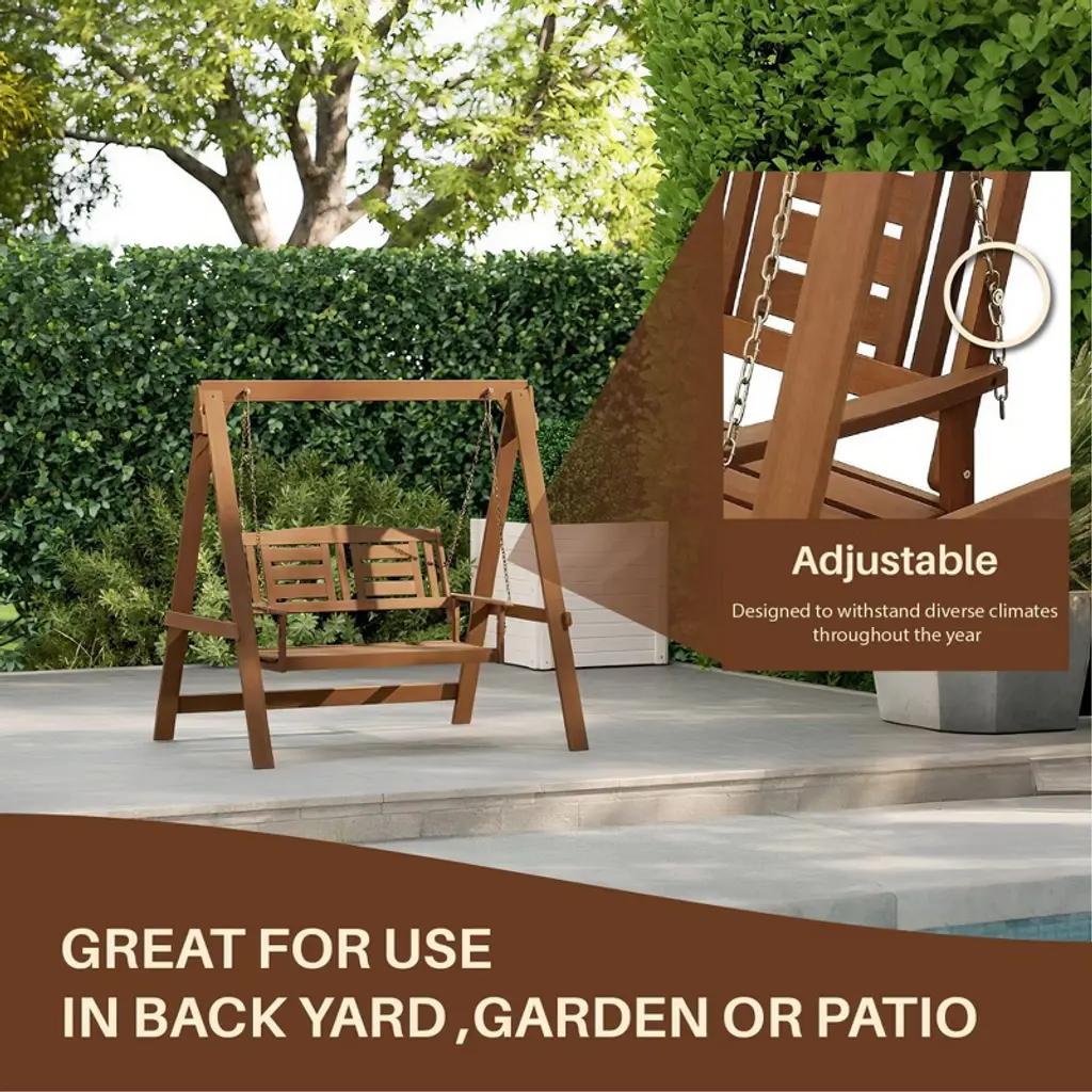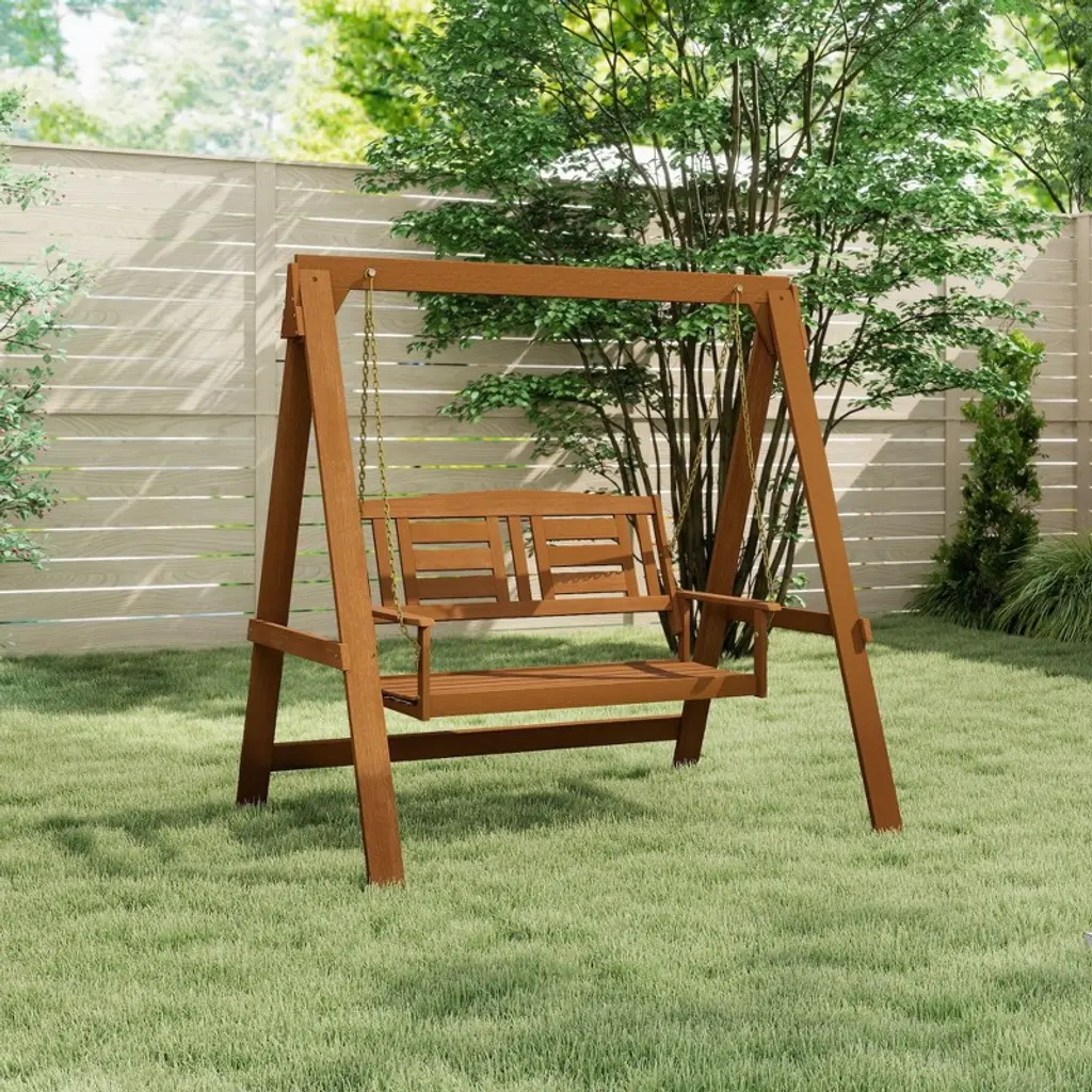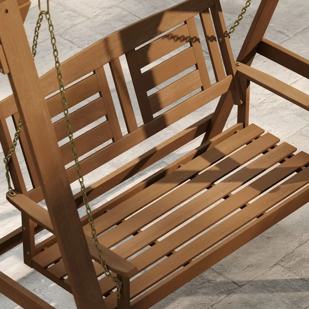 HOMLUX brings comfort and charm to your outdoor space with this 4ft hardwood porch swing. Crafted from durable meranti wood treated with teak oil, it comes with a sturdy metal frame and chains for safe, stable relaxation. Perfect for patios, gardens, or backyards.