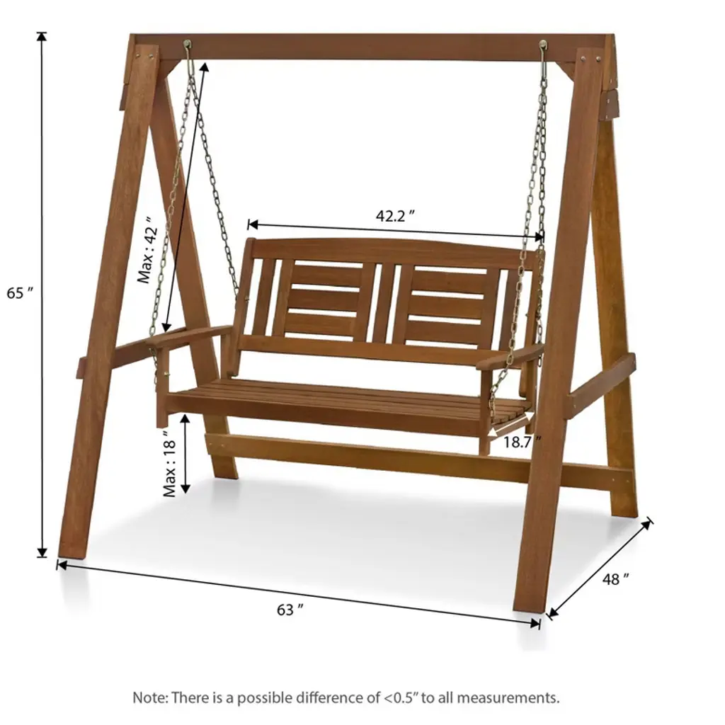 Homlux 2 Seat Outdoor Porch Swing Bench Meranti Wood Chair With Stand, Hardwood Frame