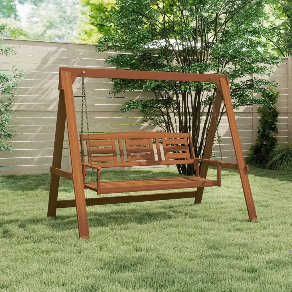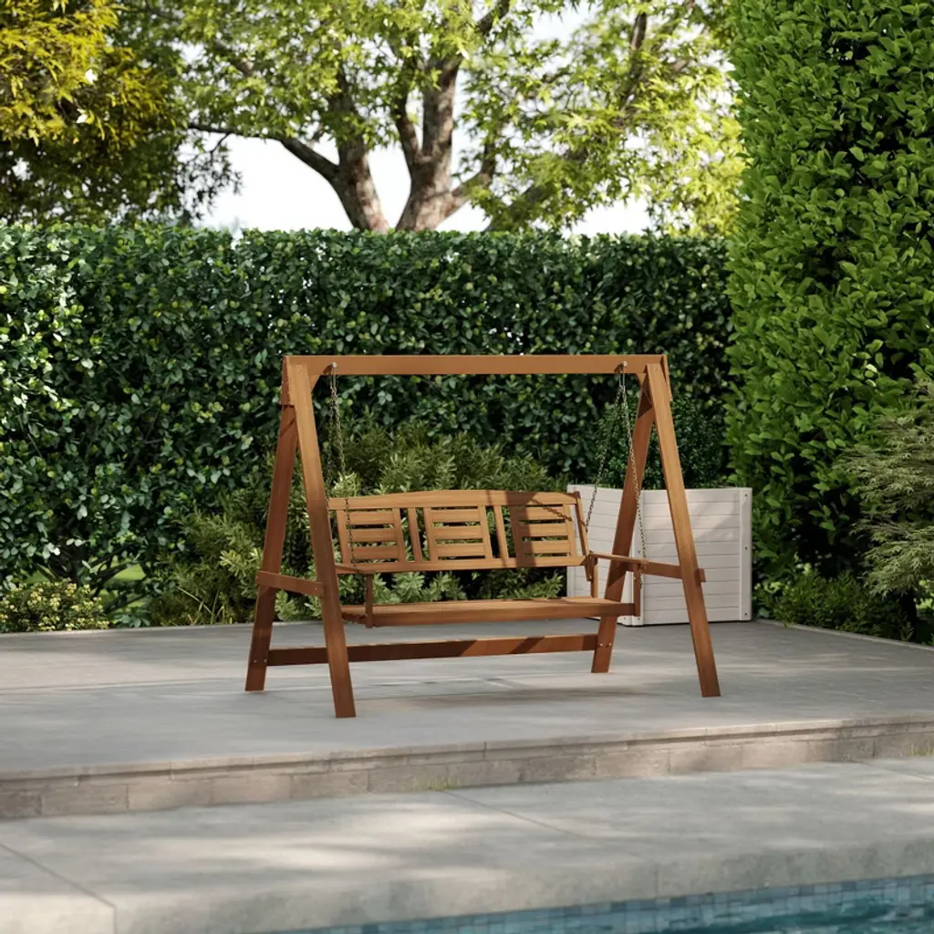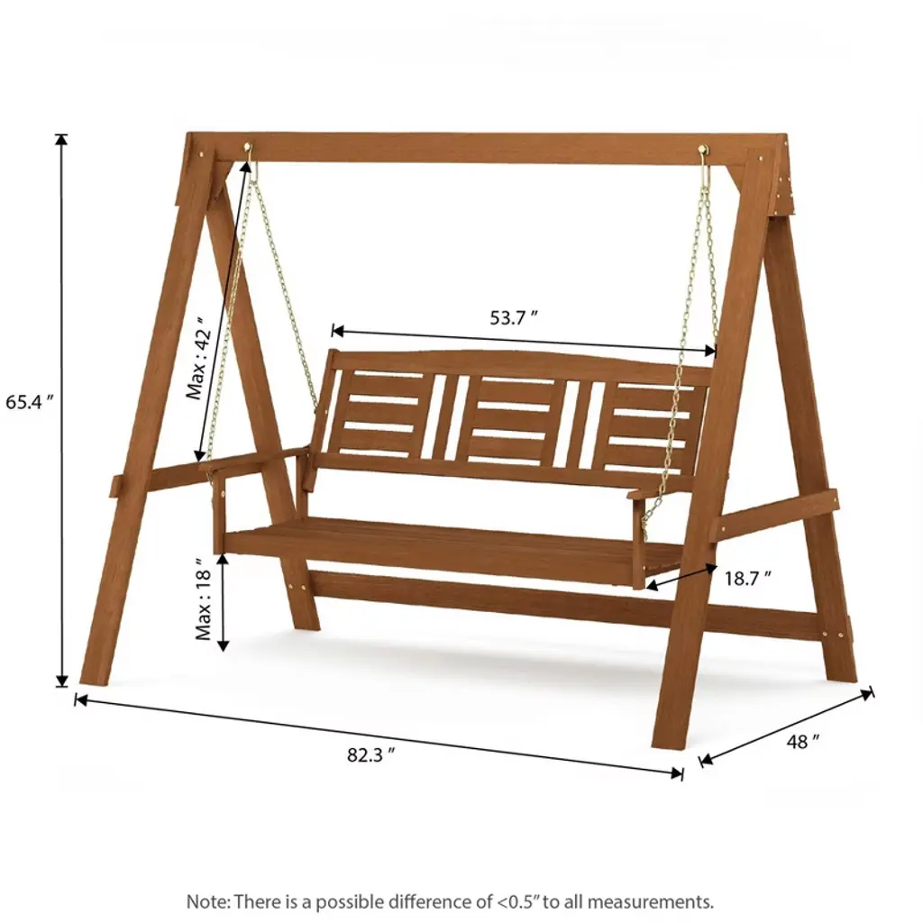 HOMLUX adds spacious seating to your patio or yard with this 3-seater porch swing. Built from teak oil-treated meranti wood, it features a robust frame and strong metal chains for lasting support. Relax in comfort and style outdoors.