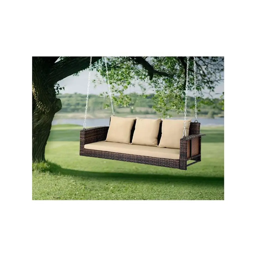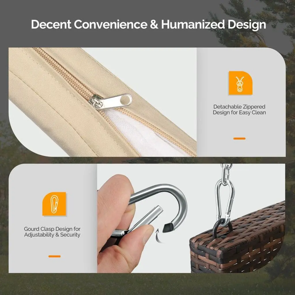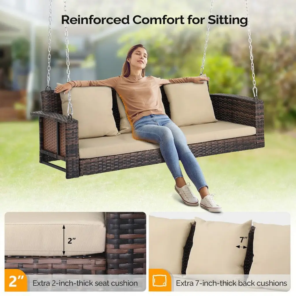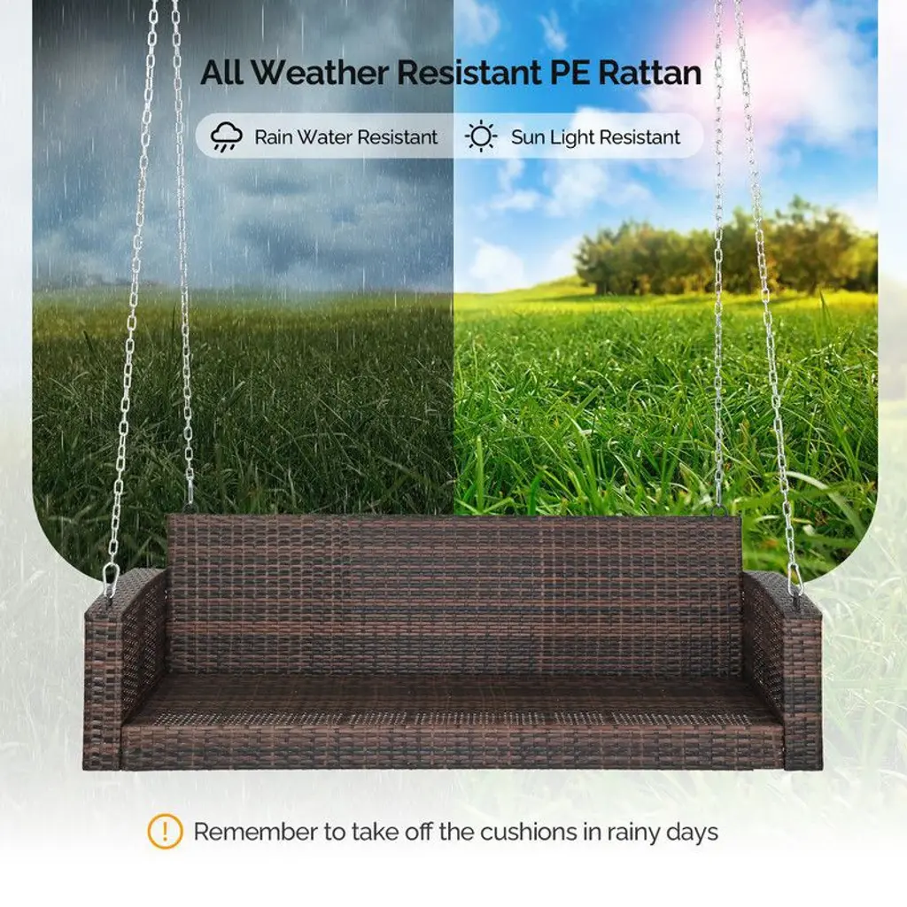 Immerse yourself in the ultimate relaxation with our wicker hanging porch swing. This outdoor rattan swing lounge is a fusion of elegance and comfort, designed to enhance any porch, backyard, lawn, or garden. Suitable for two or three, it's the perfect spot to enjoy a peaceful afternoon with a gentle sway. The robust frame, combined with plush cushions, provides a cozy nook for reading, sipping your favorite beverage, or simply soaking in the serenity of your outdoor haven.
