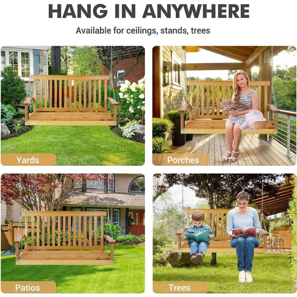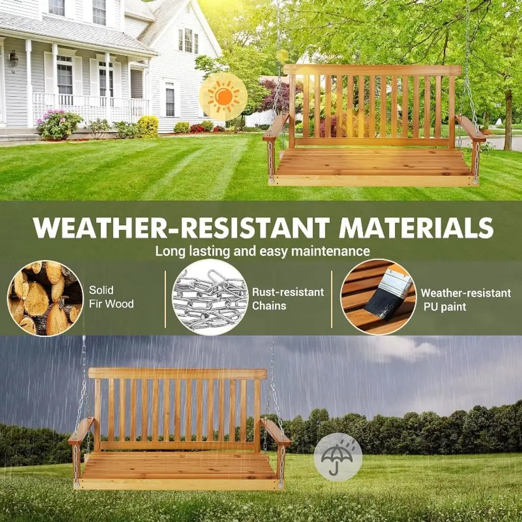 Create a cozy outdoor retreat with the Nasitip 48" Wooden Porch Swing! This heavy-duty swing (440 lb capacity) is crafted from premium weather-resistant fir wood with reinforced hanging chains for durability. The 4-foot-wide seat comfortably fits two adults, featuring sanded slats to prevent splinters and a gentle rocking motion for ultimate relaxation. Perfect for porches, decks, or gardens, its rustic natural finish complements farmhouse or modern styles. Includes all hardware for easy installation on beams, pergolas, or sturdy trees. Low-maintenance and built to withstand sun/rain, this swing transforms any outdoor space into a serene getaway!