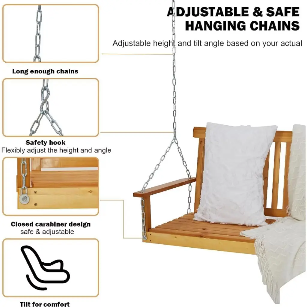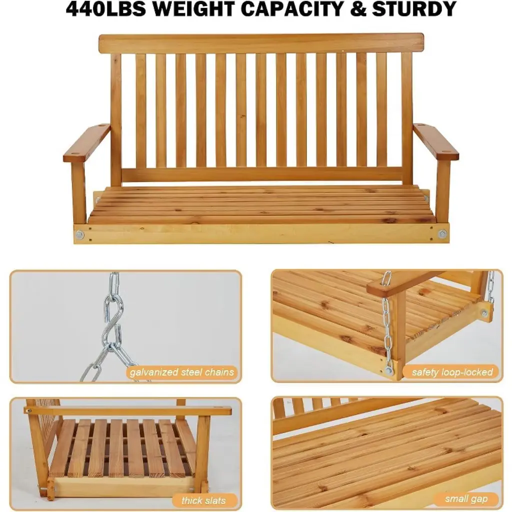 Nasitip 48" Outdoor Porch Swing, 440lb Capacity Heavy Duty Wooden Swing With Chains, Rustic Natural Finish For 2 Adults