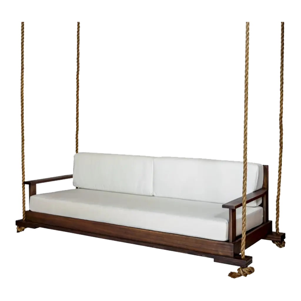 NAYSAYE patio swing bed is built with premium acacia wood for lasting strength and weather resistance. Designed for a twin mattress, it provides a comfortable outdoor retreat. The swing features secure hemp ropes for stable movement and is perfect for any garden or porch. Easy to install, this swing offers a relaxing place to read, nap, or unwind in any season.