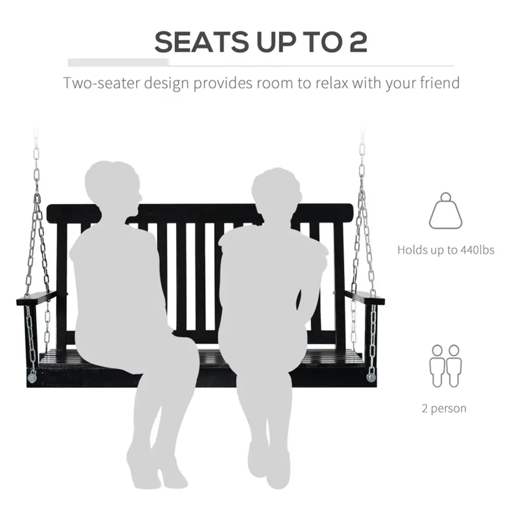 Okak 2-seater Hanging Porch Swing Chair With Slatted Design,outdoor Patio Swing With Chains,bench Swing For Backyard,garden,deck,black