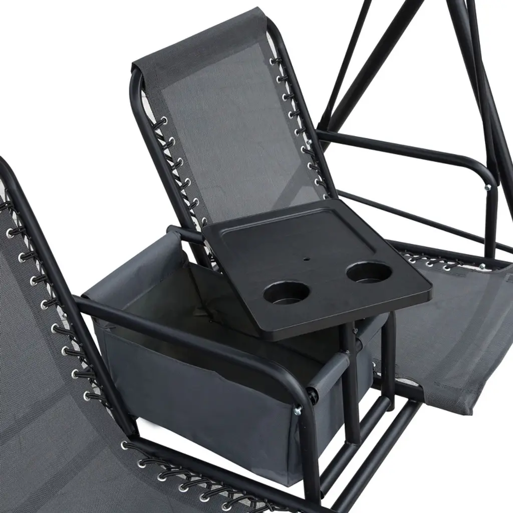 Okak 2-seater Patio Swing With Canopy And Pivot Table,outdoor Porch Swing With Cup Holders,patio Swing Chair For Garden,poolside,backyard,gray