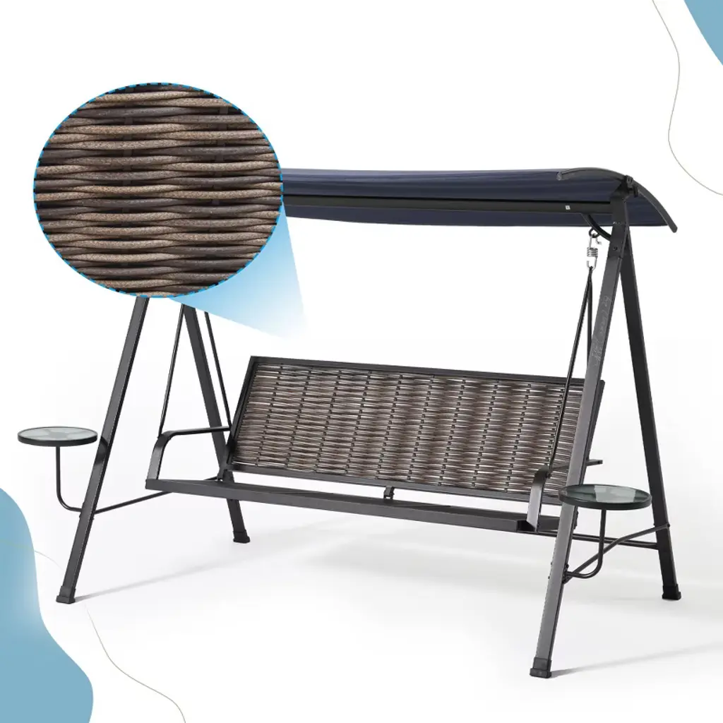Enjoy premium comfort with this 3-seater steel porch swing, featuring a rotating canopy for adjustable shade and plush cushions with included lumbar pillow. The outdoor swing with canopy boasts a weather-resistant powder-coated steel frame and comes with two removable side tables for convenience. Perfect for patios, porches or backyards, this swing chair with stand offers spacious seating and durable construction for years of relaxation.