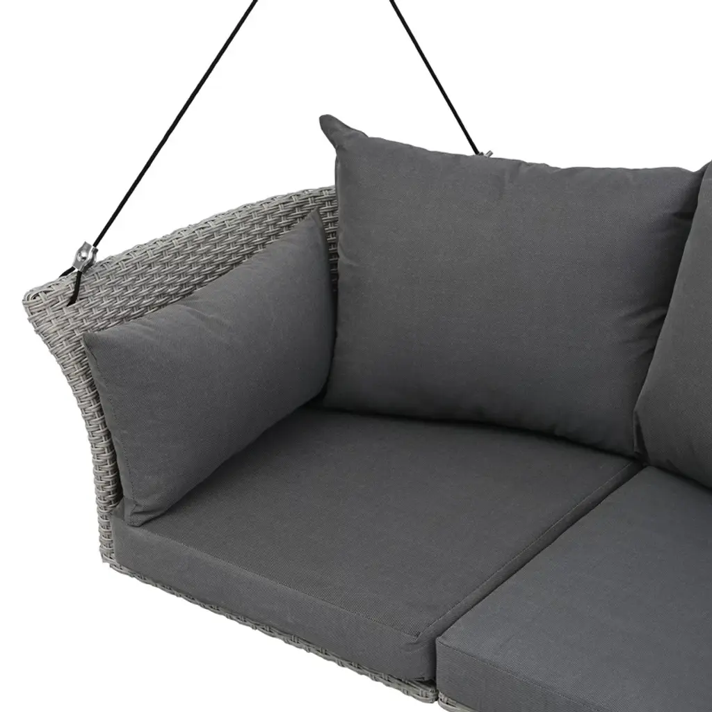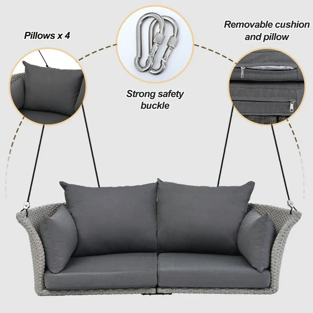 Okak 51.9" 2-person Woven Hanging Swing Chair,outdoor Porch Swing With Ropes And Cushions,bench Swing For Patio,backyard,garden,gray