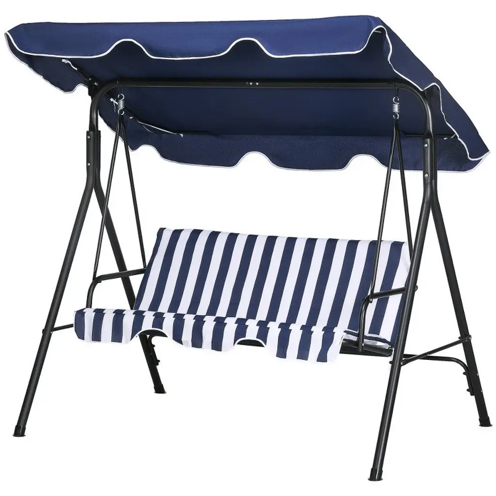 Paged 3-seat Outdoor Swing Chair With Adjustable Tilt Canopy And Removable Cushion,porch Swing With Steel Frame Standfor Patio,porch,dark Blue
