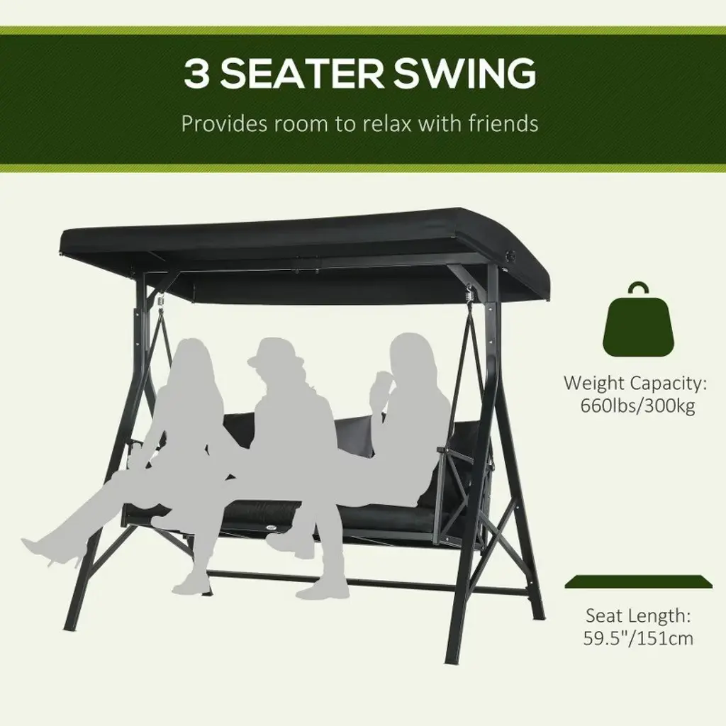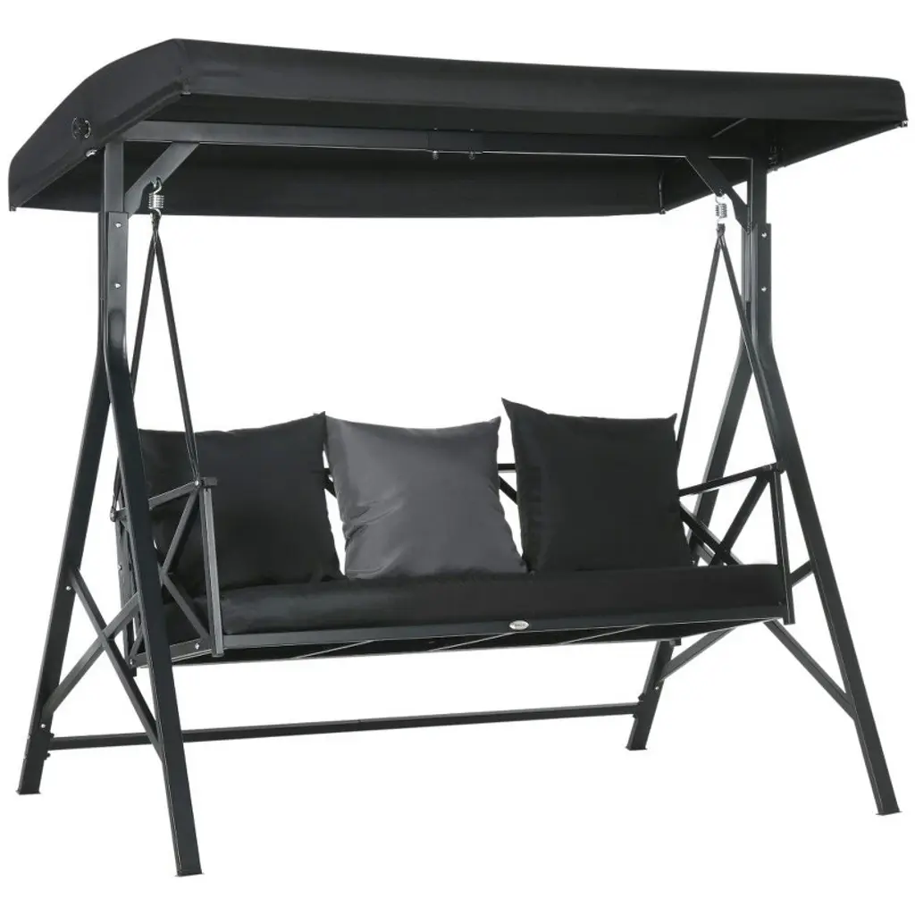 Paged Outdoor Swing Chair With 3 Throw Pillows And Adjustable Canopy,porch Swing With Cushion For Patio,porch,black,3-seat