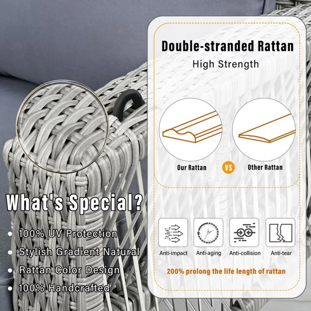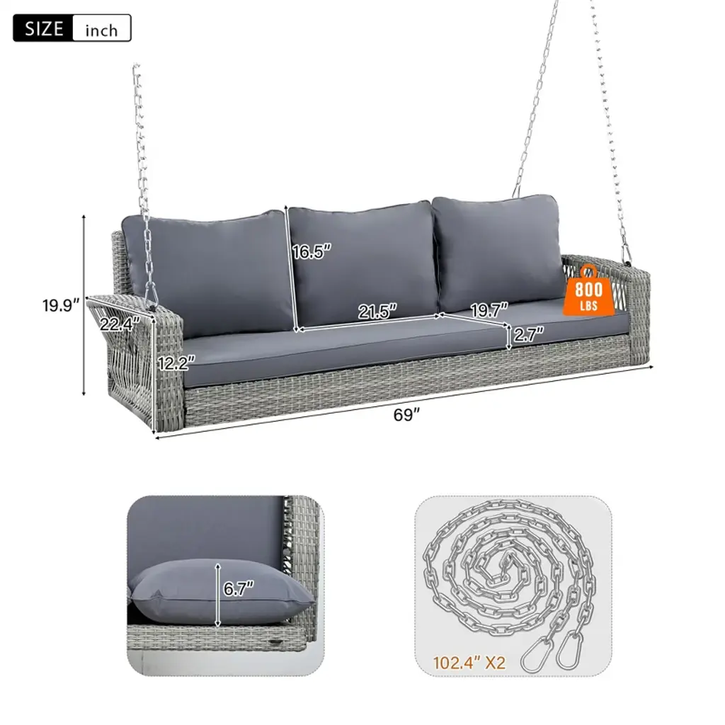 Paged Porch Swing Wicker Outdoor Swing With Chains, Soft Cushions For Outdoor, Garden, Poolside, Gray