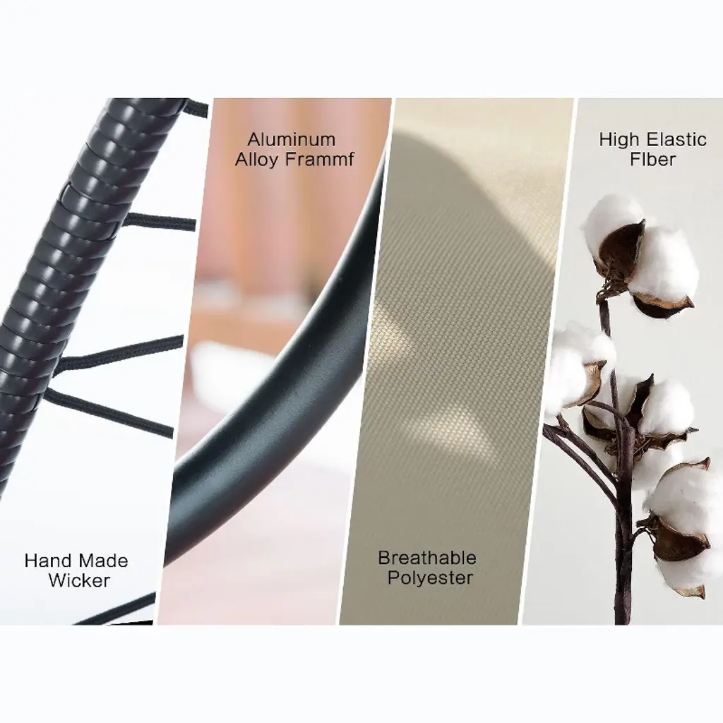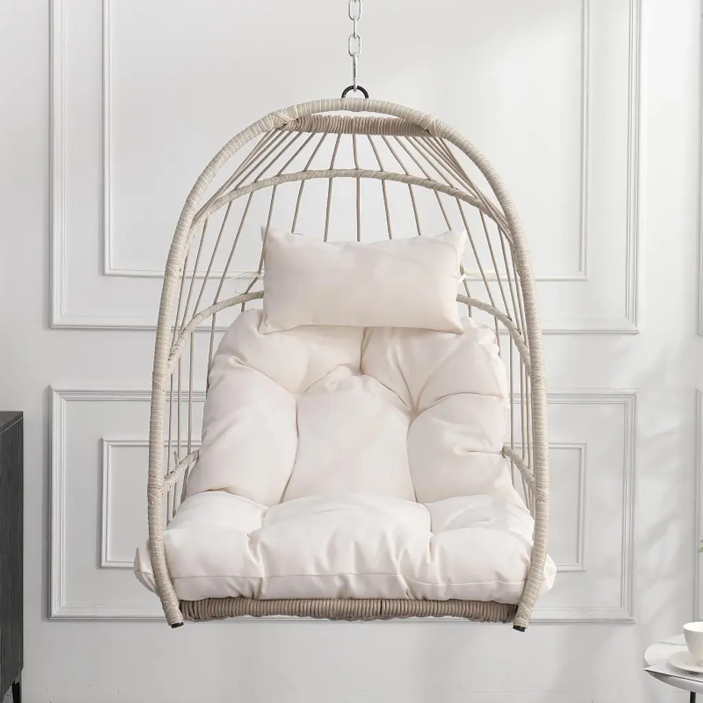 Paged Porch Swing With Stand Wicker Swing Chair With Seat Cushion For Outdoor, Porch, Garden, Beige