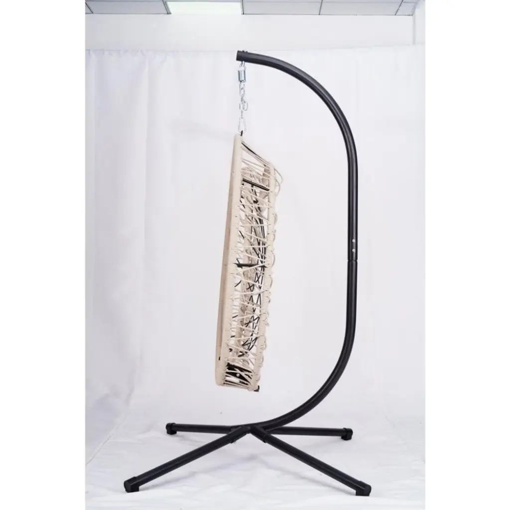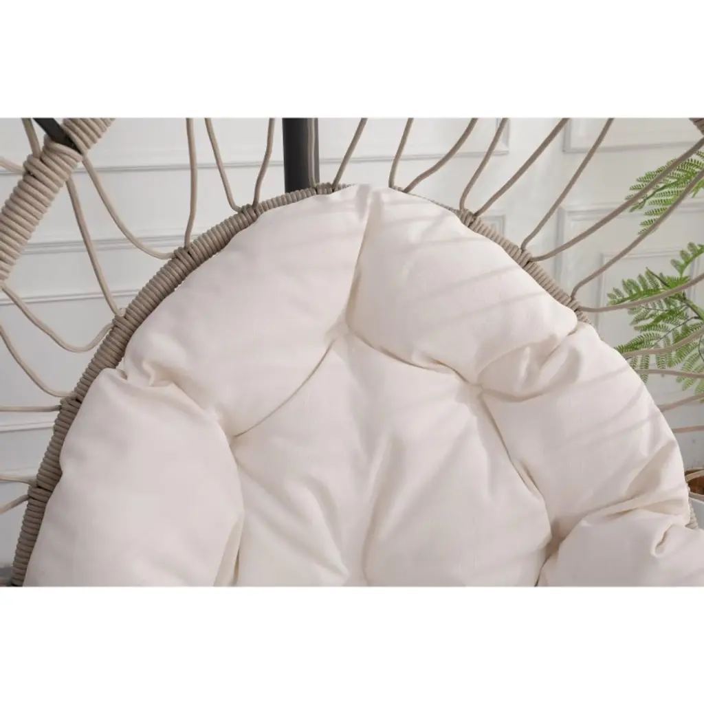 Sapphtopaz Outdoor Porch Swing Chair Egg-shaped Woven Patio Swing Hanging Chair With Cushions And Stand For Outdoor, Garden, Terrace, Backyard, Beige