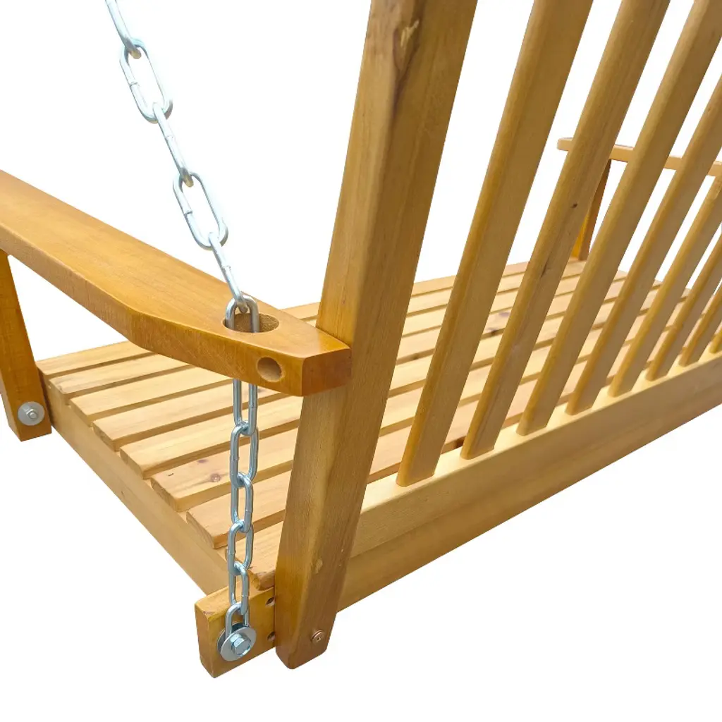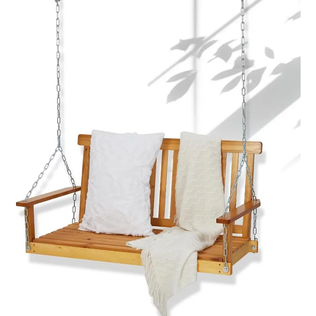 Sapphtopaz Porch Swing Chair Patio Armrest Wood Swing Bench 2-person Backrest Swing With Hanging Chains For Patio, Garden, Backyard, Terrace, Teak