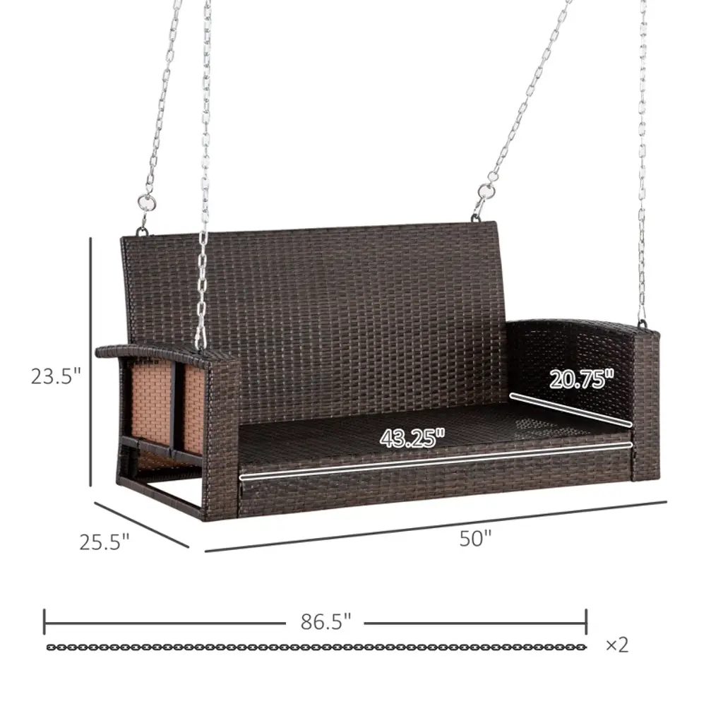 Tiramisubest 2 Person Wicker Hanging Swing Bench,front Porch Swing Outdoor Chair With Cushions For Backyard,garden,orange