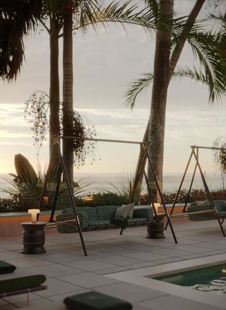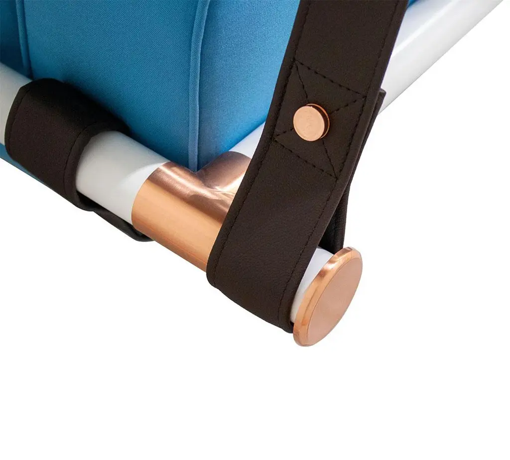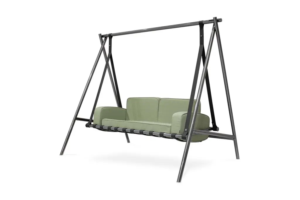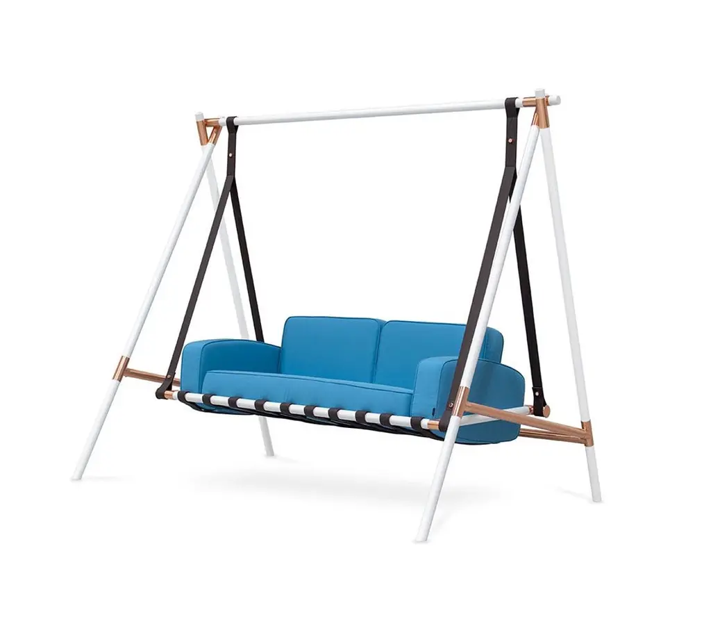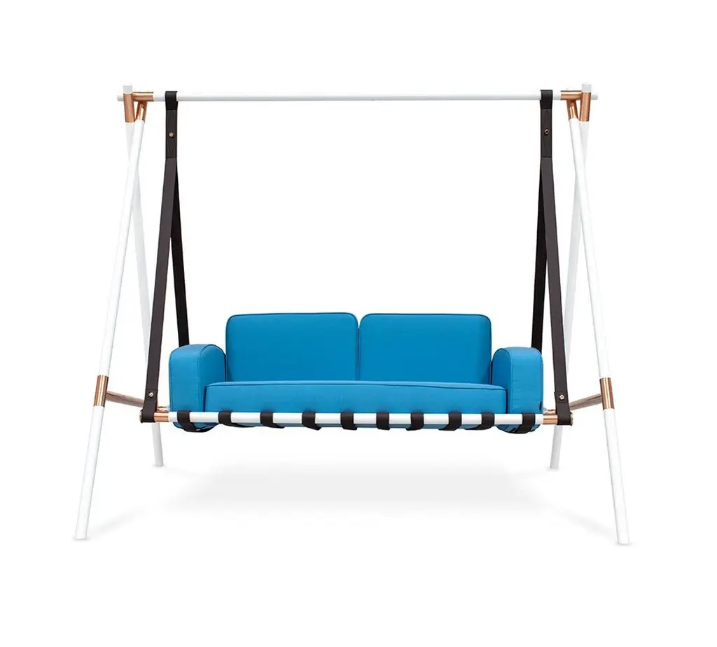 Fable Outdoor SwingThe Fable swing is completely customizable, which offers you the possibility of turning it in the main attraction and star of any patio or garden design.The whole design of this sophisticated outdoor swing was developed according to the following structure: -Structure: White matte lacquered stainless steel;-Metallic details: copper-plated stainless steel;-Upholstery: beige acrylic fabric;-Straps: western outdoor synthetic leatherAll Myface materials are from premium suppliers, engineered to offer the best performance possible outdoors.Water, Mold, Mildew, UV and Fading resistance are some of the characteristics that you can expect from both materials, that are available in a wide array of colors and patterns.Hold by lacquered stainless steel and plated details joints, this inviting swing is available in a wide color array of weather-resistant synthetic leathers. Through a contemporary interpretation of the traditional childhood swing, Fable allows quality outdoor moments without any concerns.