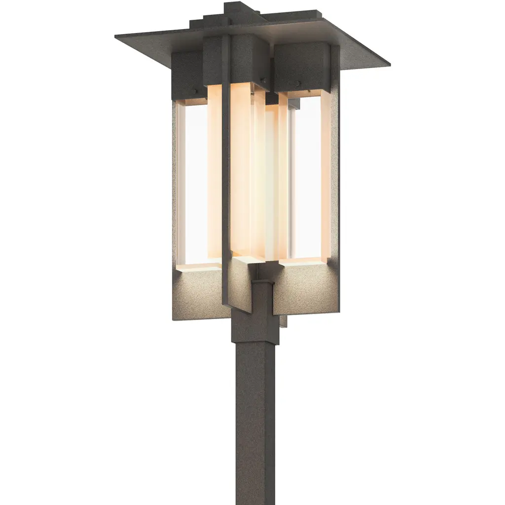 Light your way in grand style. Four handcrafted aluminum bars rise up and around to secure the glass of their large Axis Outdoor Post Light. A metal top plate and banding complete the sophisticated look. 4-light outdoor post light with clear glass and finish options. Features a square collar for use with 2.5" square posts. Post, pier mount, and cover cap sold separately. Features