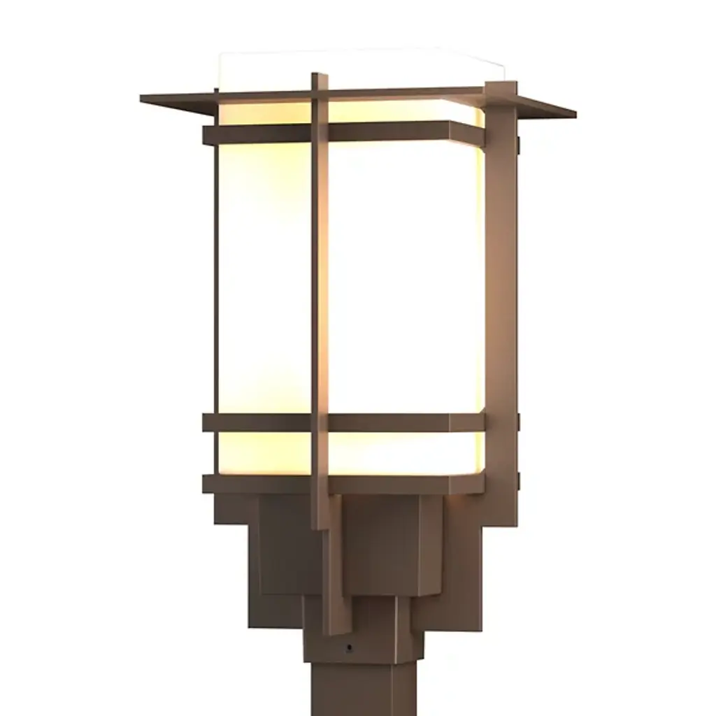 Step up your curb appeal with the Axis Outdoor Post Light from Hubbardton Forge. Refined and sophisticated, this fixture features 4 rectangular glass shades each surrounded by sturdy Aluminum accents. A metal top plate brings the elements together, creating a cohesive look. UL Listed Wet with coastal finishes and suitable for every environment. Each piece is handcrafted in Vermont by skilled artisans.