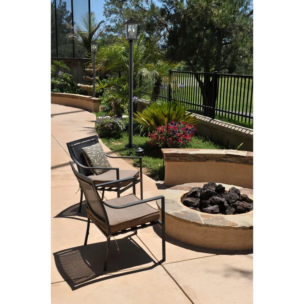 Customize a walkway or patio area with the charming look of this black outdoor light. Statuesque and ornate, its village theme design beautifies an exterior living space and spruces up the overall ambiance of a home.