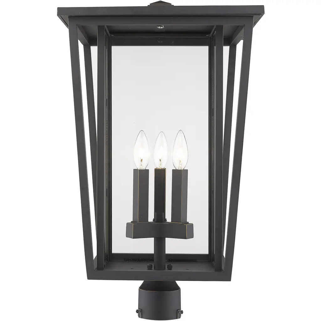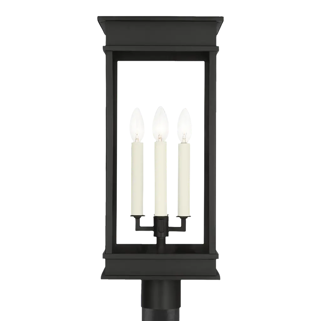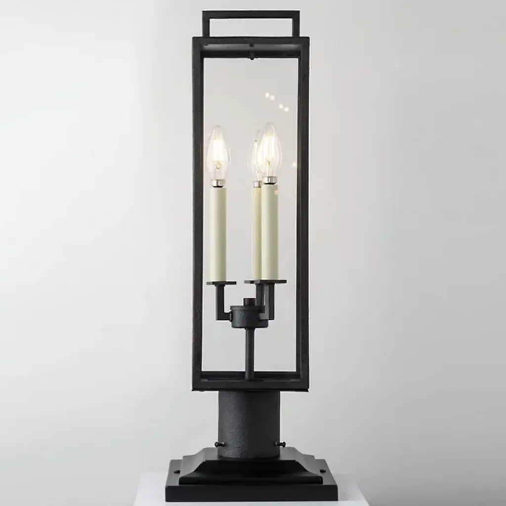 A striking departure from the post lighting of yesteryear, the Beckham Outdoor Light Post by Troy Lighting uses modern touches to create a composition that's pragmatic and architectural as it is stylish. Built around a Cast Metal frame, it's squared and angled aesthetic uses Clear Glass panes to accentuate its open lantern look. The post mounted fixture is mounted with an accent top loop that's squared to finish the look.
