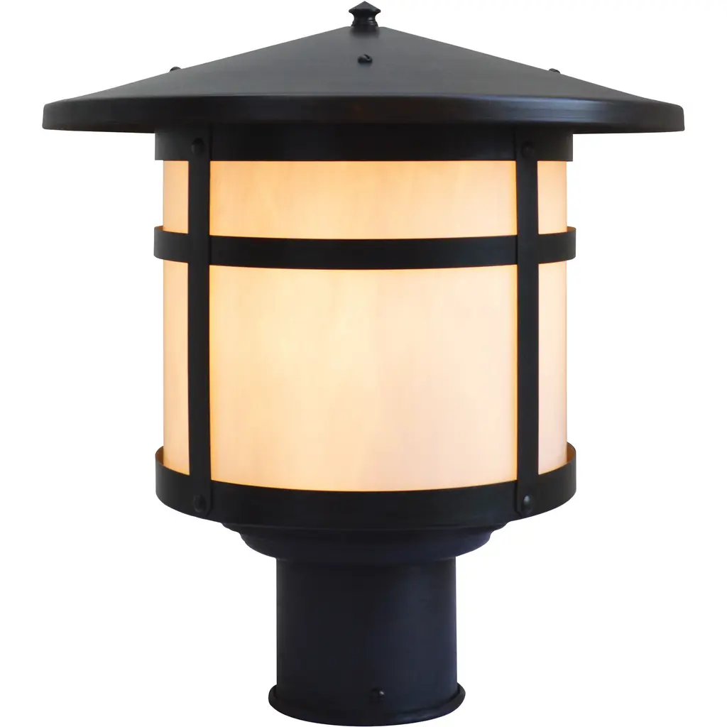 Berkeley 1 Light 11.12 Inch Mission Brown Post Mount In White Opalescent