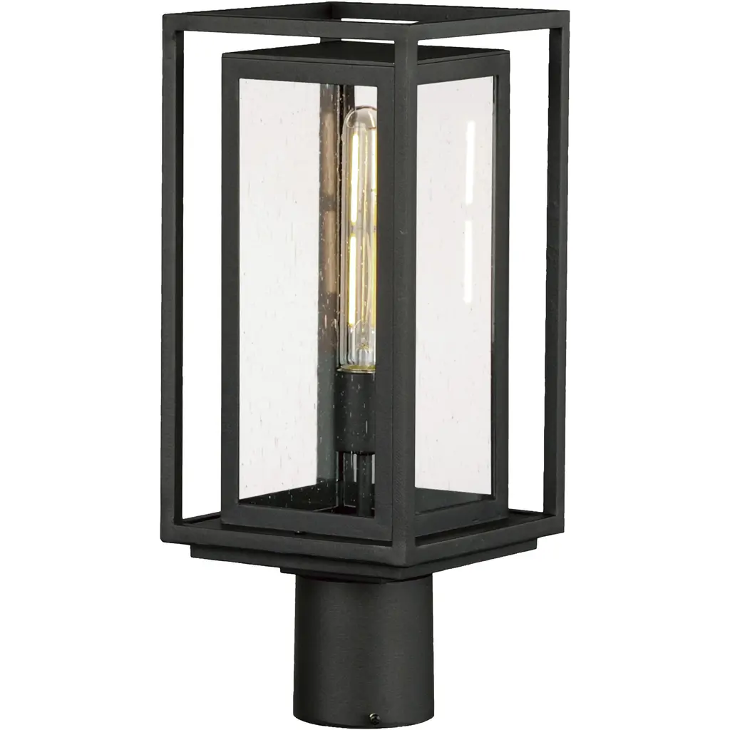 The Cabana VX Outdoor Post Light from Maxim Lighting features a dual-frame design that adds depth and dimension, blending contemporary and transitional styles. Crafted with two square tubular frames, the construction provides a sleek, modern aesthetic. The inner frame houses Clear, Seedy glass, which helps reduce glare and keeps the fixture looking clean for extended periods. This thoughtful combination of materials and design makes it an ideal choice for adding style and functionality to any outdoor space.