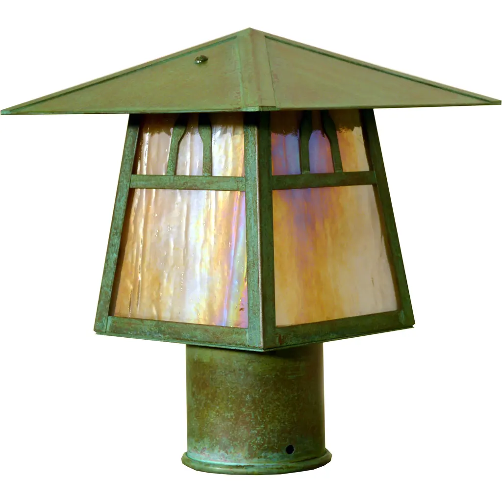 Carmel 1 Light 6.5 Inch Rustic Brown Post Mount In White Opalescent, T-Bar Overlay
