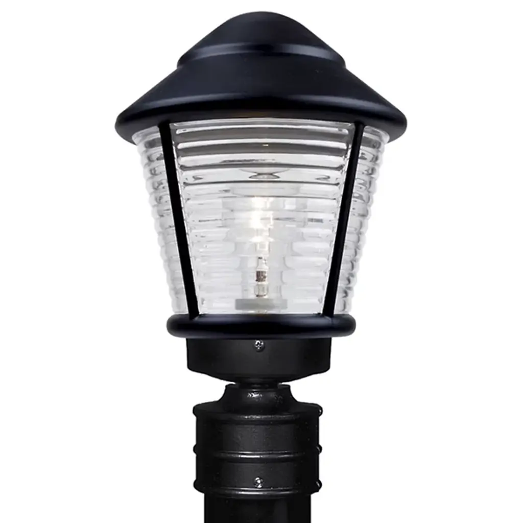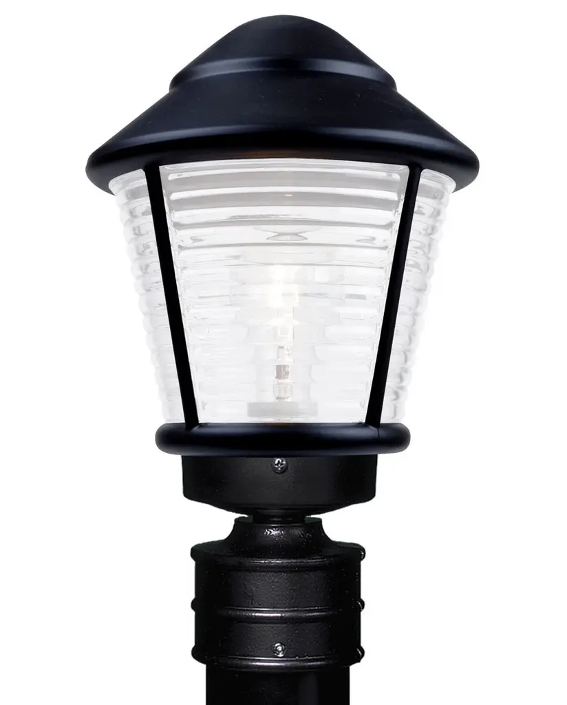 Add light to your walkways or garden paths with the 3100 Series Outdoor Post Light. The shade of this landscape light is made from European glass with a stylish ribbing detail, and the top half is painted with either a semi-translucent white or opaque black or bronze finish. The shade sits atop the post fitter that is made from aluminum and posses a powder coated finish that matches the diffuser. When illuminated, this post light provides the necessary light to safely guide your path at night.