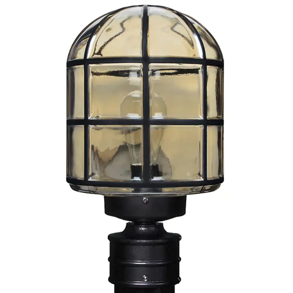 The 3417 Series Outdoor Post Light by Besa Lighting has a vintage and industrial style that is decorated with a window-pane detail. The shade is made from blown glass with a tint. The shade sits on top of the aluminum post fitter. When in use the light provides diffused ambient light that will guide you.