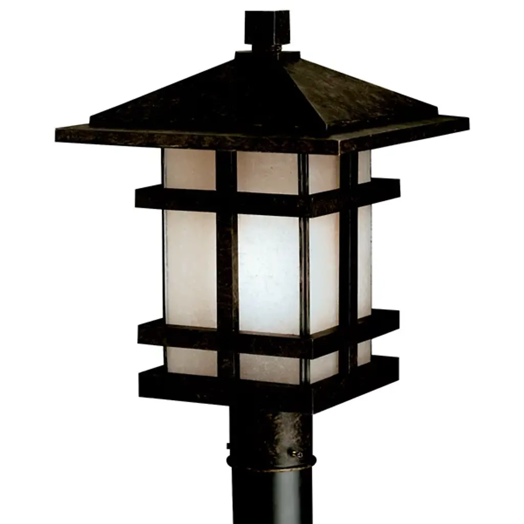 The Kichler Cross Creek Post Mount offers a warm, inviting feel--a welcoming addition to front yards, gardens and walkways. Features an Aged Bronze finish, cast aluminum construction and a translucent textured linen seedy glass shade. Pairs perfectly with the other outdoor lights in the Kichler Cross Creek collection.