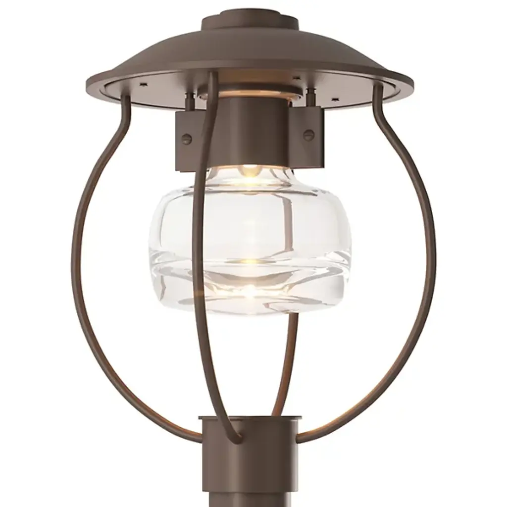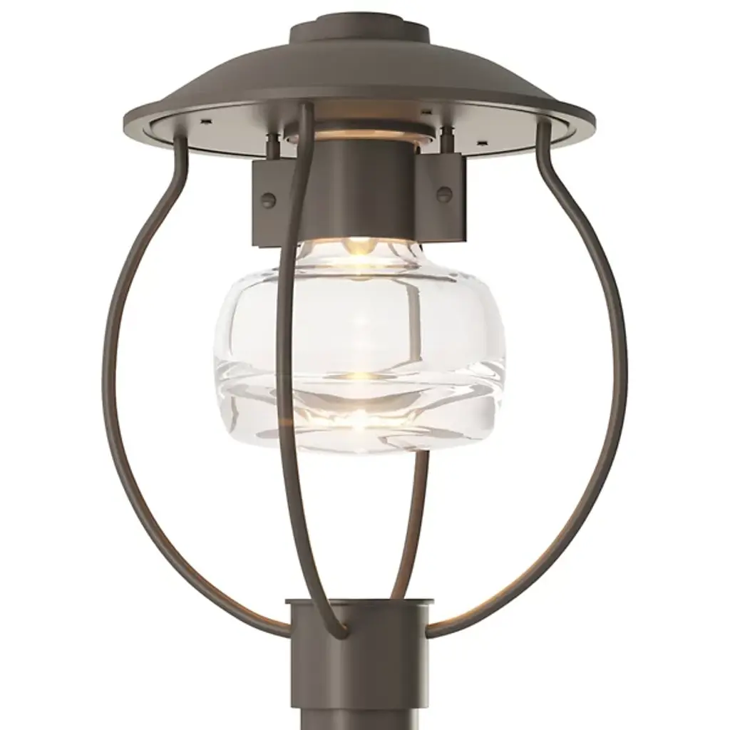 With a modern twist on a classic design, the Erlenmeyer Outdoor Post Light from Hubbardton Forge takes inspiration from the New England coastline and combines that with a modern design and clean lines. This fixture features a thick central post, study metal cage, and thick glass shade. A coastal finish and UL Wet rating allow for use in even the harshest climates. Each piece is made to order and handmade by artisans in the US.