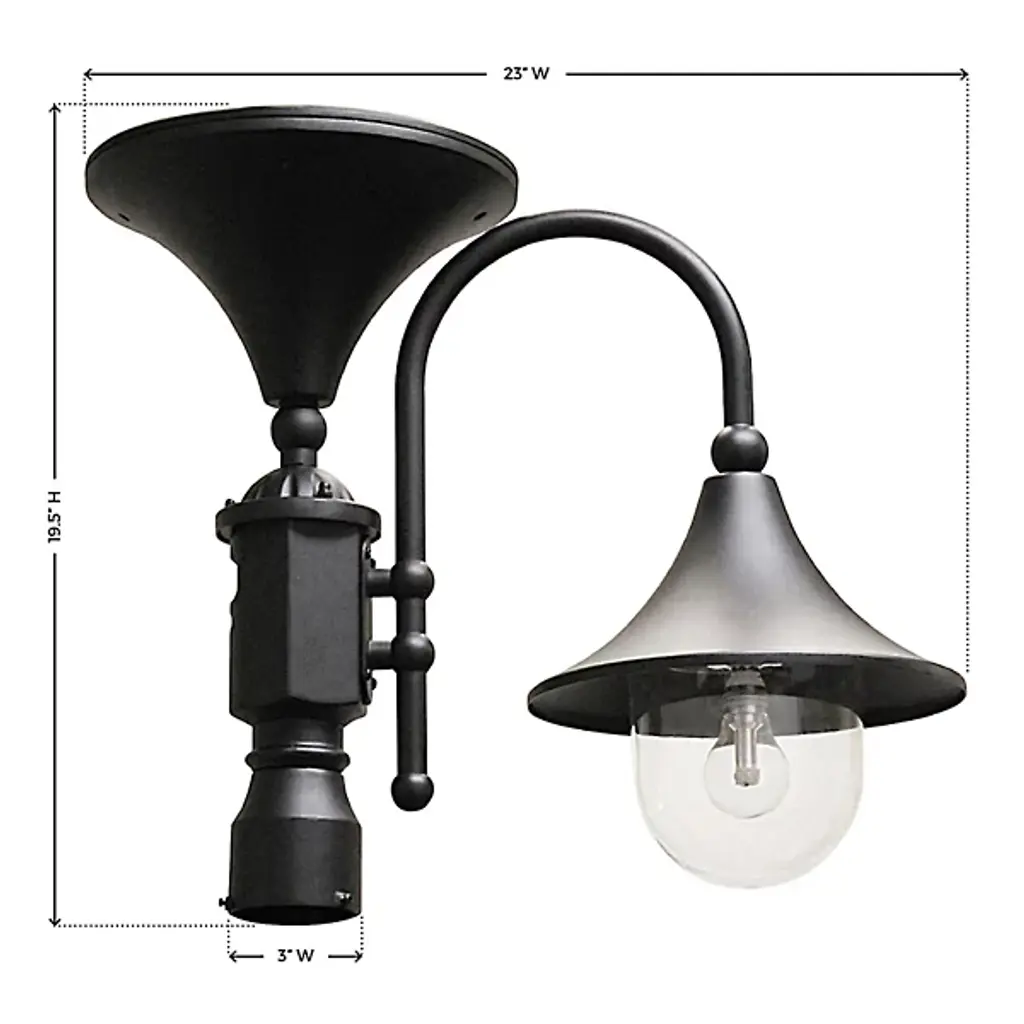 With its single lamp head, the Everest Solar Outdoor LED Post Light from Gama Sonic seamlessly blends industrial elements with a bold modern design. Installation is a breeze, as all necessary hardware is included, and it can be mounted on any 3-inch outside diameter pole or 3-inch pier/flat base. This solar lighting solution is stylish and practical, crafted from weather-resistant, rust-resistant cast aluminum in a powder-coated black finish. Featuring cutting-edge GS solar LED light bulb technology, it offers 360-degree illumination. At dusk, the lamp automatically turns on, providing direct downward illumination at a brightness of 200 lumens in warm white (2700K). On a full charge, it lasts up to 12 hours with no wiring needed—place it in a sunny spot and let the sun do the rest.