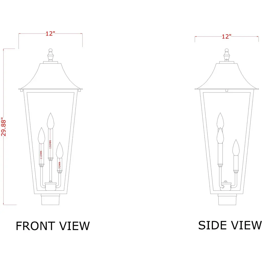 Gannon 3 Light 30 Inch Black Outdoor Post Mounted Fixture In G9