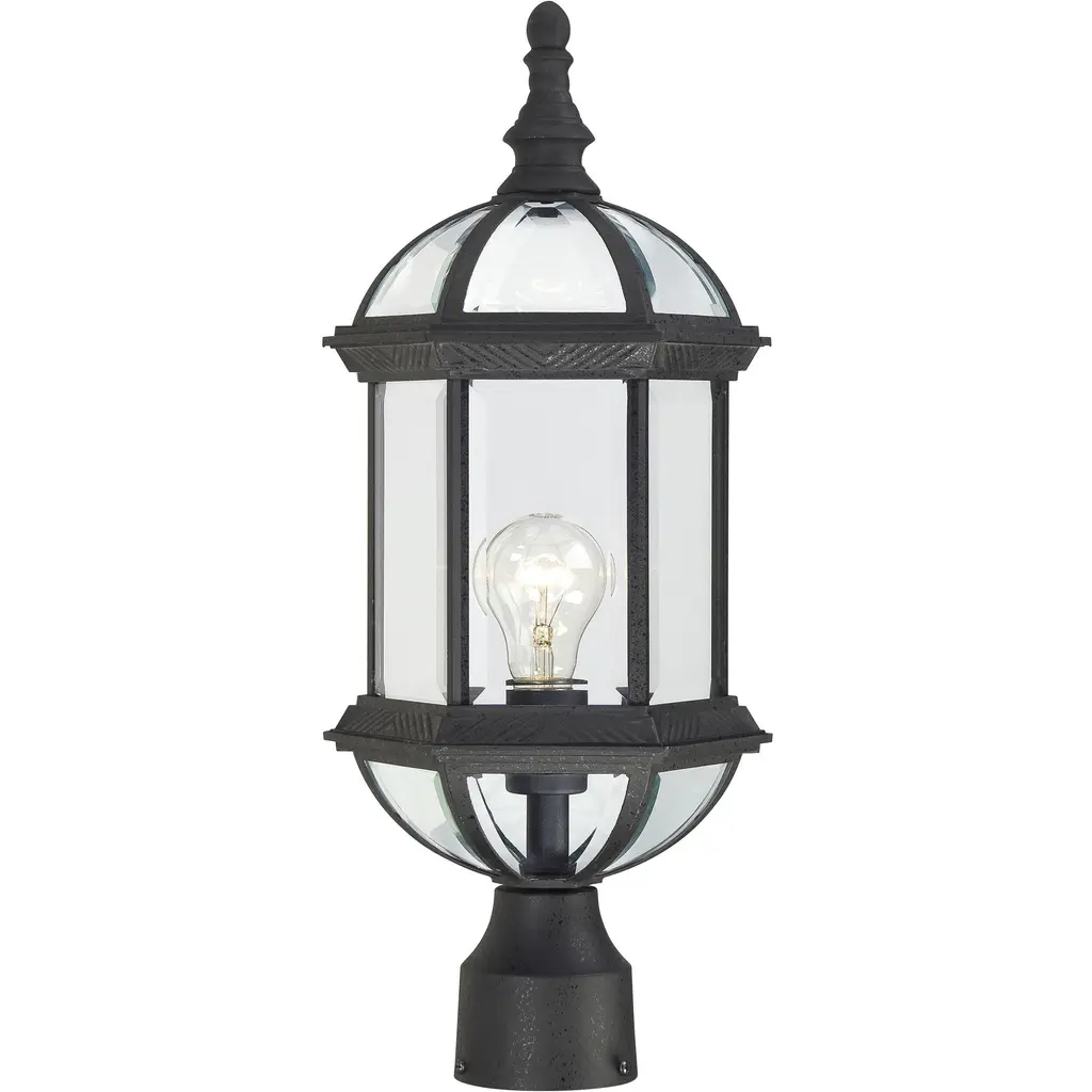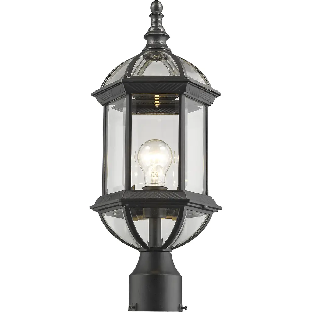 One Light Outdoor Post Mount from Barrie collection in Tannery Bronze finish. Number of Bulbs 1. Max Wattage 100.00. No bulbs included. This 1 light outdoor post from the Barrie collection is a perfect outdoor embellishment with classic and sophisticated details. Made from cast aluminum, this outdoor light is able to withstand the elements and features a beautiful Tannery Bronze(TM) finish with clear beveled glass panels. No UL Availability at this time.