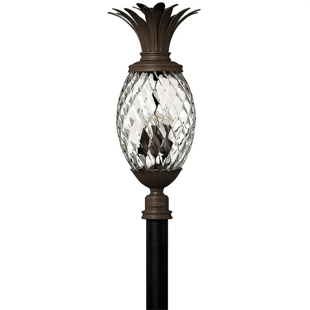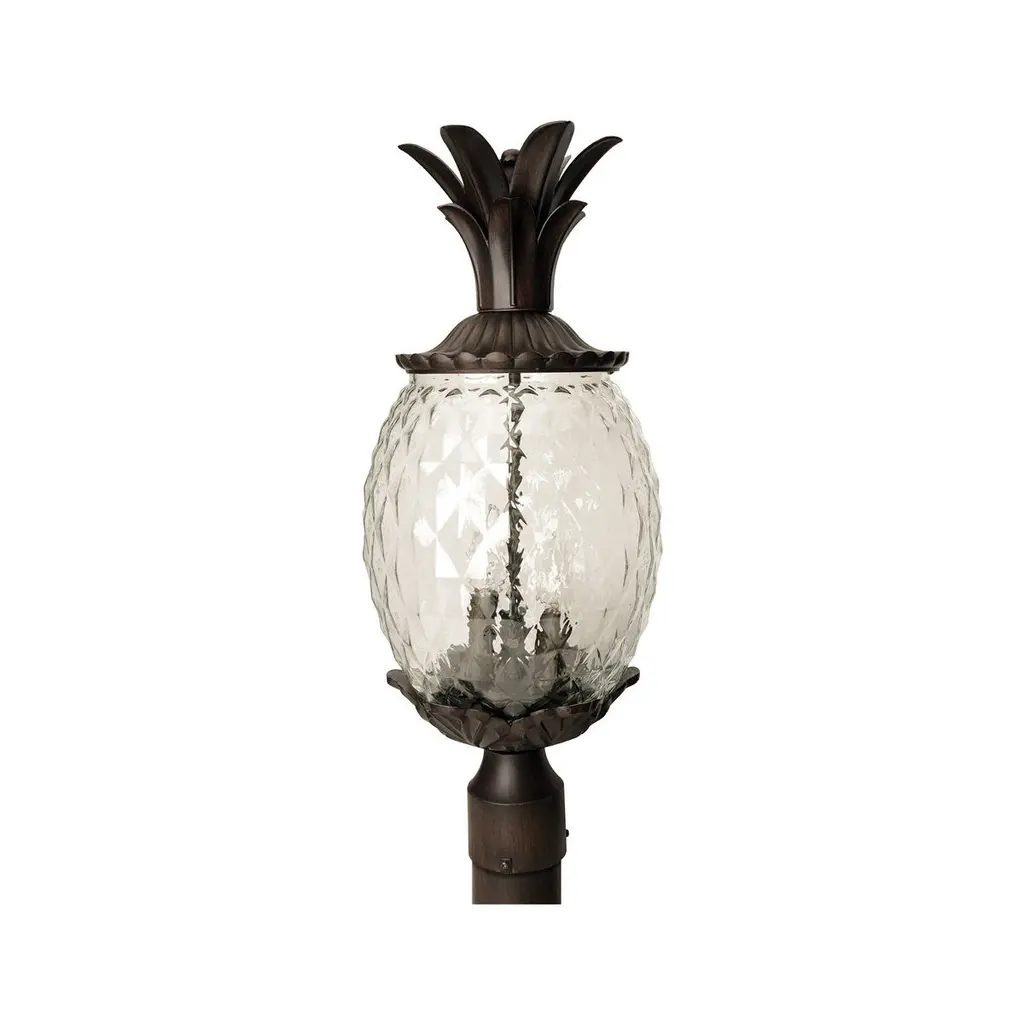 Lanai embodies southern charm. Welcome guests with this fun tropical fruit shaped lantern. This popular collection is constructed of cast aluminum with clear, textured glass in the shape of a pineapple.