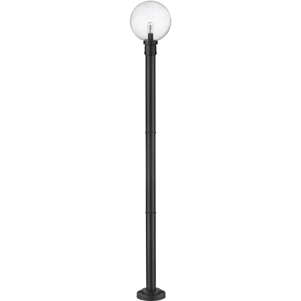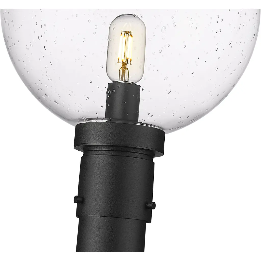 Adopt a simple yet stylish look in an exterior space with a light source that becomes a staple in decor. This one-light outdoor post mounted fixture from the Laurent collection maintains a retro village feel with linear simplicity. A black finish aluminum post and base embodies straightforward classic styling, as a delicate clear seedy glass globe delivers beautiful artistry.