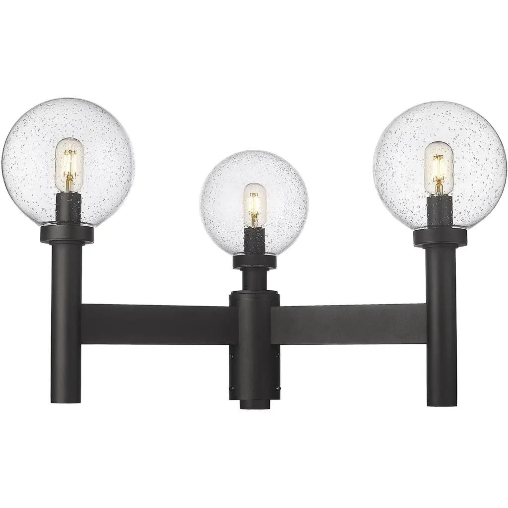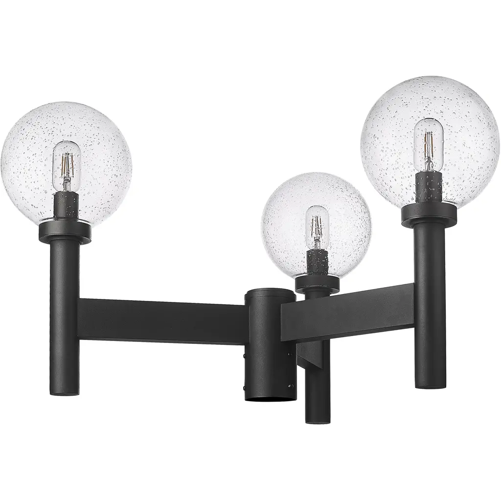 Extend the careful design focus from interior spaces to the outside with a fashionable and chic light source. From the Laurent collection, this three-light outdoor post mount fixture preserves a classic village aesthetic with a sophisticated, straightforward linear aesthetic. A black finish aluminum frame makes a stunning venue to host three delicate clear seedy glass globe shades, creating an impressive festive look.