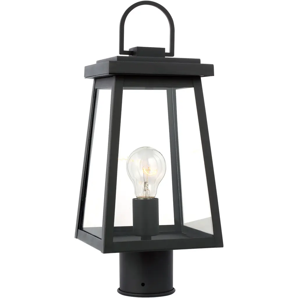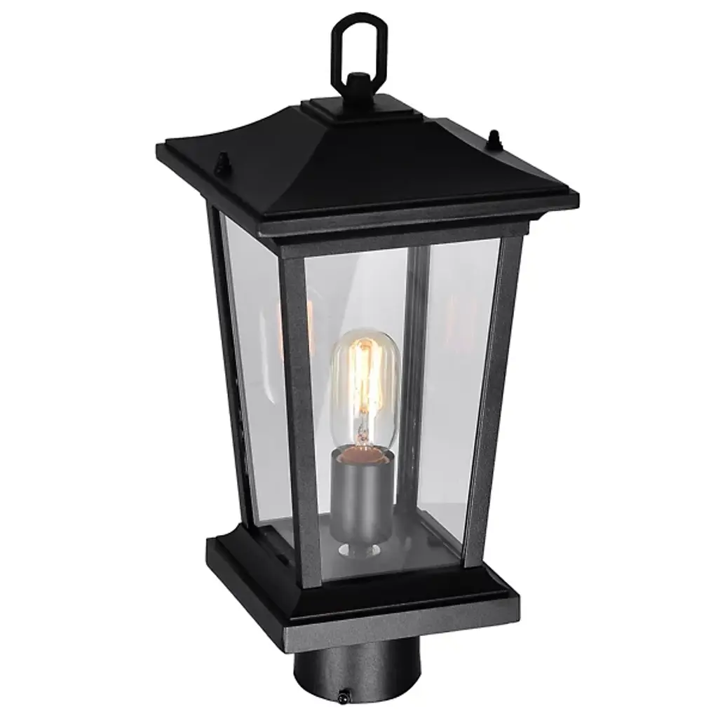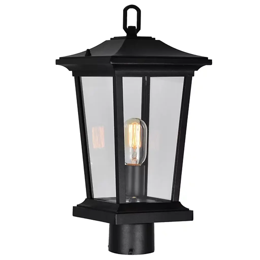 The Leawood Outdoor Post Light from CWI Lighting enhances your home's curb appeal. This outdoor lantern head combines modern design with a storybook charm, which evokes the classic silhouette of fairytale lamp posts. With its durable metal frame, glass sides, and a warm, inviting glow, it not only provides proper lighting for your outdoor space but also elevates the ambiance, ensuring your home's exterior remains inviting and enchanting.