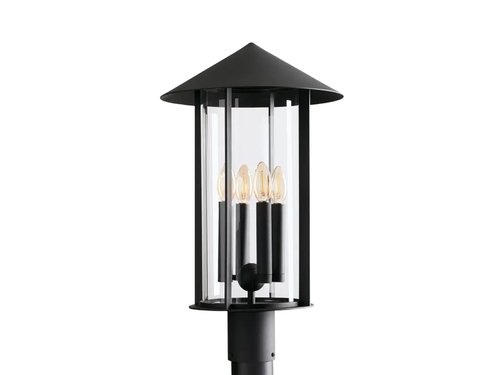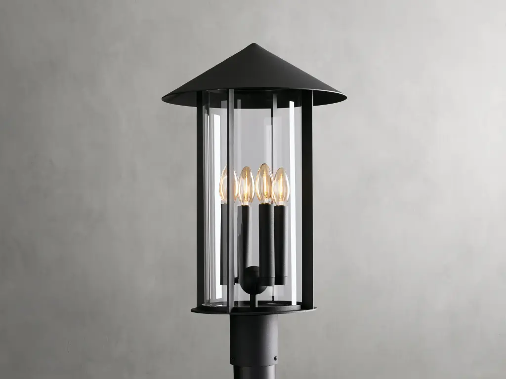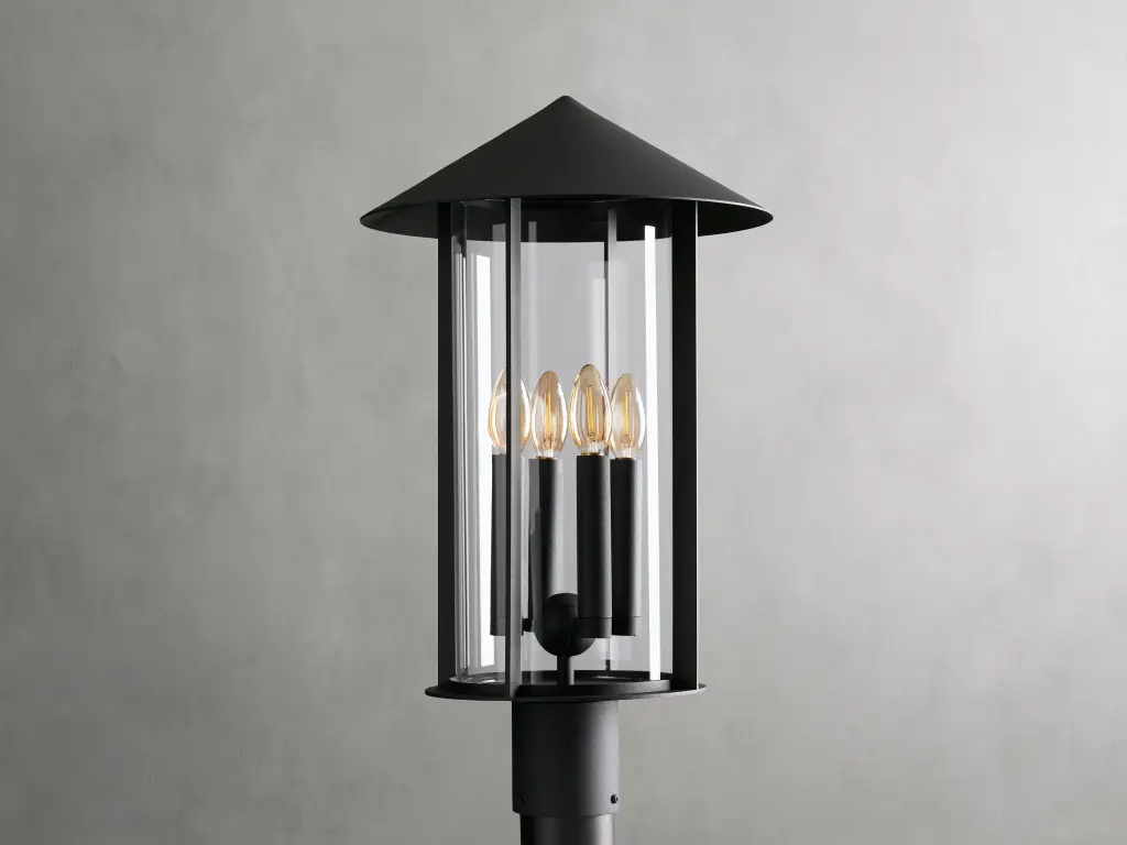 At the intersection of rustic and coastal, our Maynard Collection awaits. Crafted from aluminum with a textured black finish, our Maynard Outdoor Post Light redefines the traditional coach lantern design with its modern, geometric silhouette and conical top.