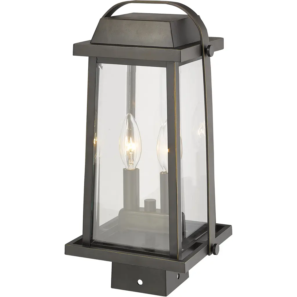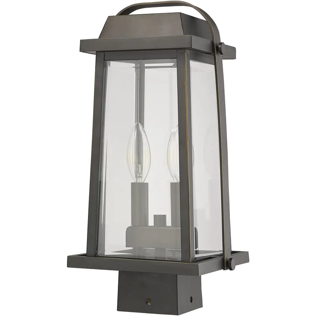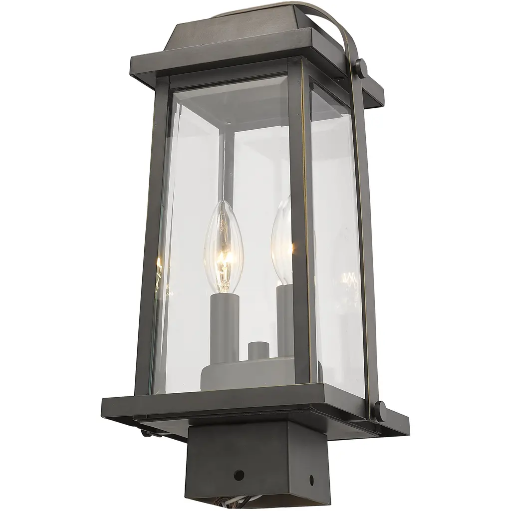 Designed to fit a square post, this outdoor post light lends a touch of classic character to a patio or walkway. An oil rubbed bronze finish complements a familiar lantern silhouette, while two lights behind clear beveled glass ensure exceptional illumination.