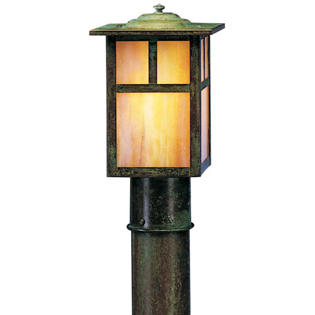 Mission 1 Light 10 Inch Verdigris Patina Post Mount In White Opalescent, T-Bar Overlay