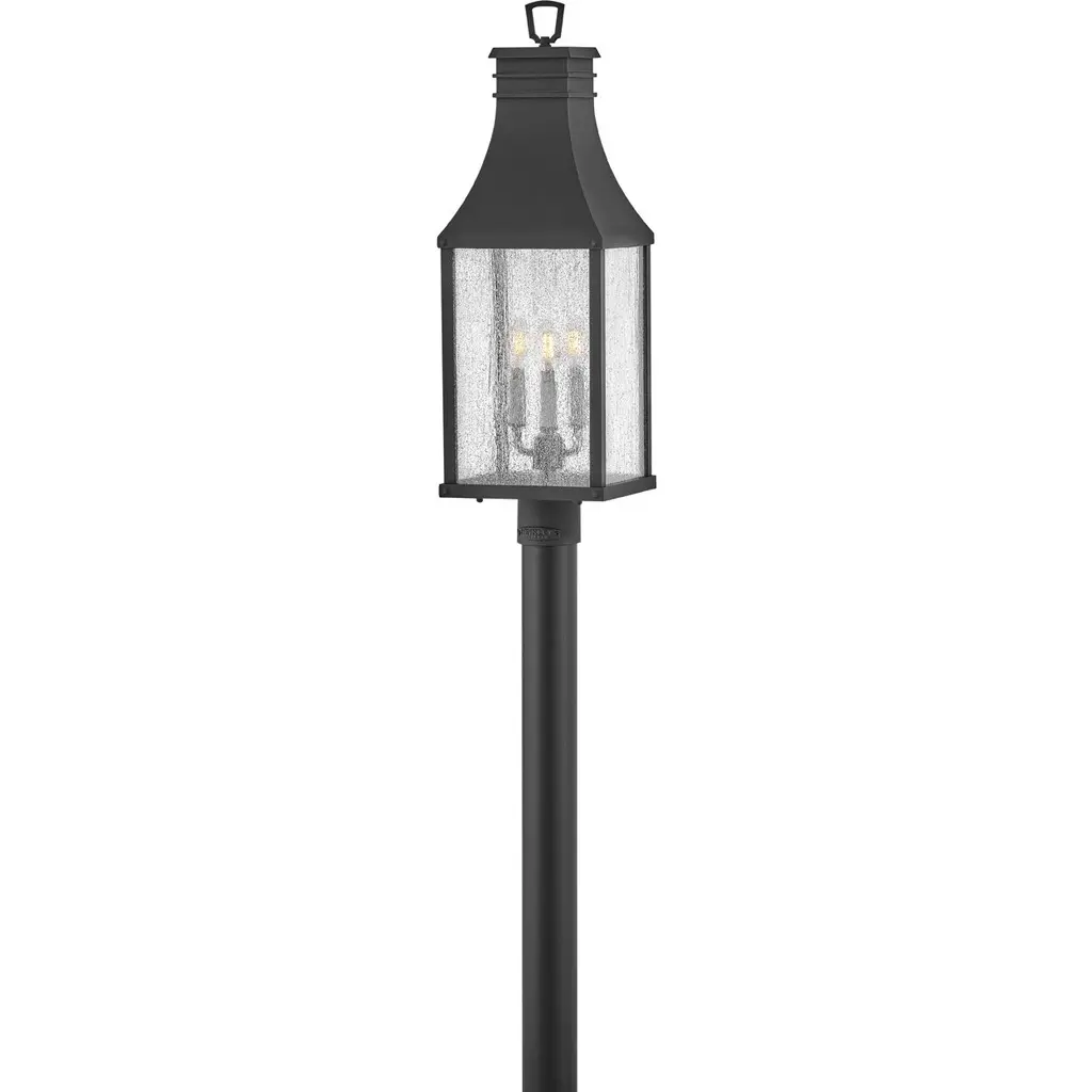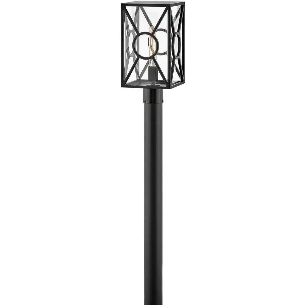 Illuminate your yard in style with the calming presence of the Montecito Outdoor Post Light from Hinkley Lighting. Modern and elegant, this clean and appealing piece consists of a lengthy, round post body and a timeless lantern-like frame top. The smooth cast aluminum construction allows it to work with a range of home styles while the set of bulbs within the glass enclosure spread a bright and even touch of light. For maximum play between light and shadow, vintage filament bulbs are recommended.