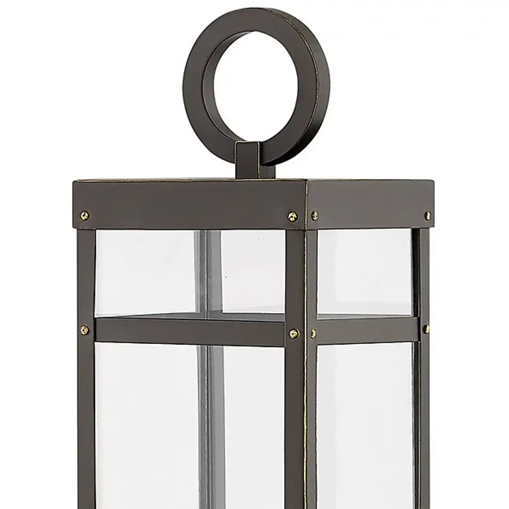 Makes a stately statement. Discover the power of landscape illumination with a Porter Outdoor Post Mount by Hinkley Lighting. It delivers optimum beauty, function, and safety when used to brighten a driveway, front steps or patio area. Featuring fine rivet details and a sturdy hanger loop on its design that fuses modern farmhouse with artsy industrial, this fixture creates an outdoor space that's both distinctive and inviting. A vintage filament T-bulb is included for instant installation.