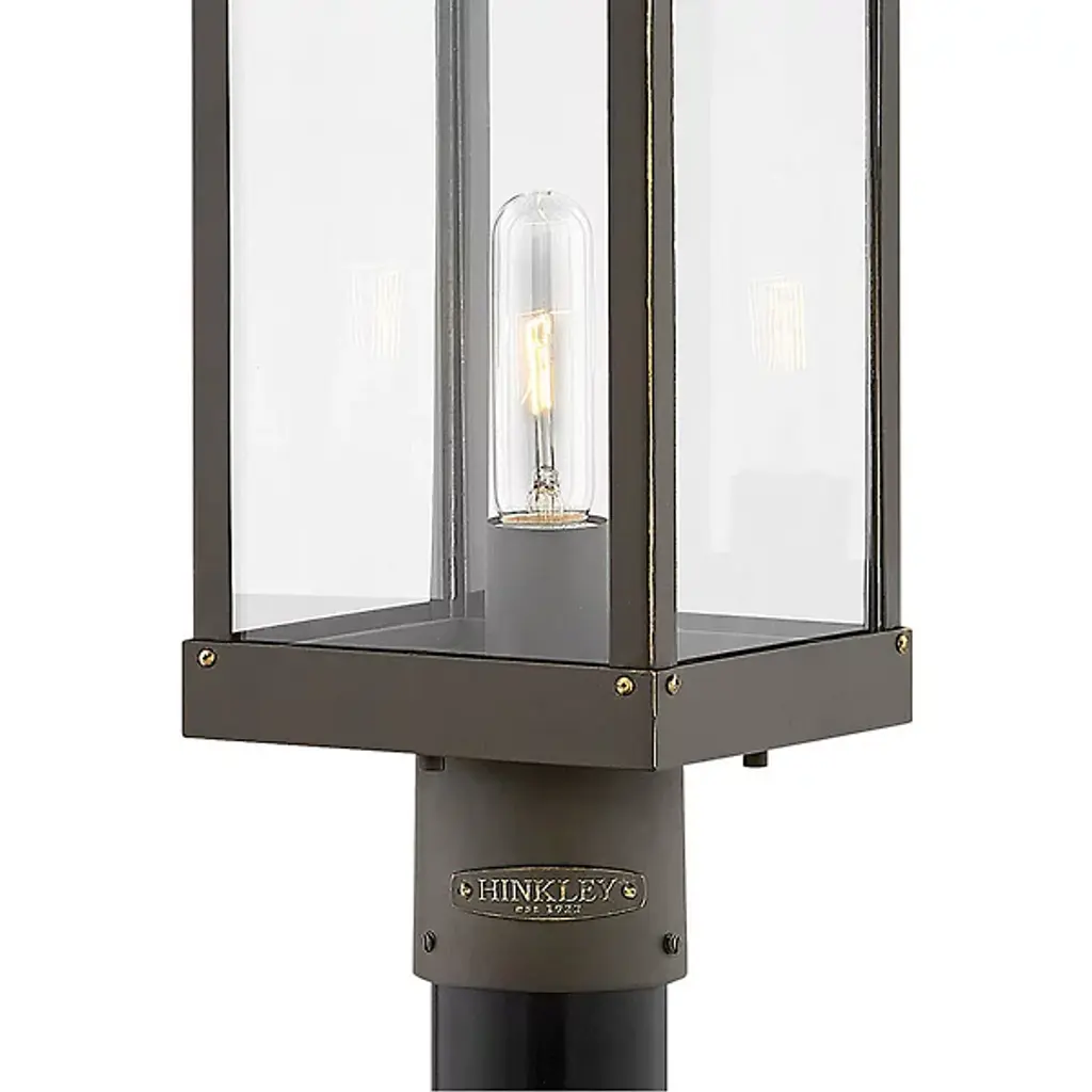 Makes a stately statement. Discover the power of landscape illumination with a Porter Outdoor Post Mount by Hinkley Lighting. It delivers optimum beauty, function, and safety when used to brighten a driveway, front steps or patio area. Featuring fine rivet details and a sturdy hanger loop on its design that fuses modern farmhouse with artsy industrial, this fixture creates an outdoor space that's both distinctive and inviting. A vintage filament T-bulb is included for instant installation.