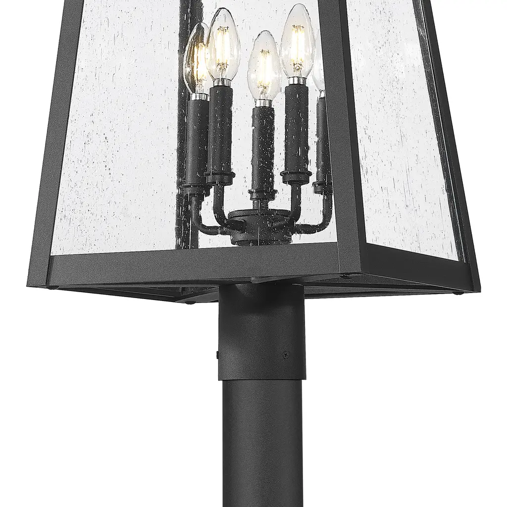 This five-light outdoor post-mounted fixture embellishes any setting as it offers soft, glowing illumination. Coastal black finishing complements aluminum construction, while seedy glass panels create the right dose of dimension and vintage depth. It's a dimmable fixture, ideal for setting the right ambiance in your gardens and landscaping.